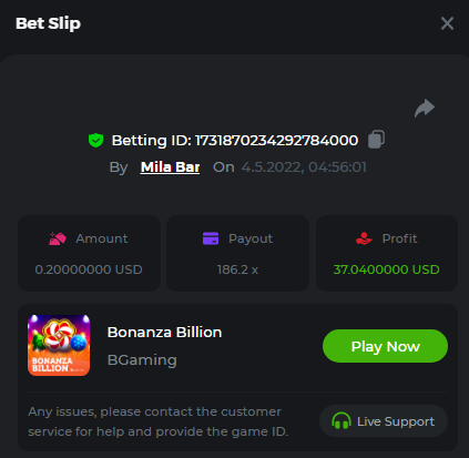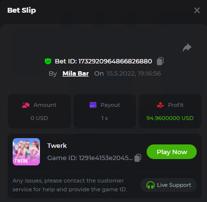 https://bc.game/sd/?sd=10KF79EECW6EC3 https://bc.game/sd/?sd=10KFUCU07BO4YB https://bc.game/sd/?sd=10KFVOTILB7CPF https://bc.game/sd/?sd=10KIHSYKVY9Q1F I had 949x on twerk with 0,10$ bet, but it shows only 1x payout... please check https://bc.game/sd/?sd=10KLBVBZM50QAB