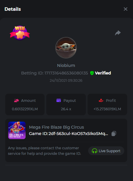 A warm welcome back, this week we're going to Playtech Games slot event, with a major $4,000 prize pool! Sky's the limit - get the highest possible multiplier you can on the slots listed below! The top 3 highest multipliers posted for each slot will win one of the ranked prizes! To spice up the challenge, all players who complete the side bounty will receive a share of $400 (details further down). Eligible Games Get the highest multiplier on any (or all) of the 4 slots below Buffalo Blitz 2 Epic Ape 2 Big Circus Wheels of Olympus Each player can only win 1 prize per slot, if a player submits more than 1 entry for the same slot, only the highest multiplier will count. Can I win a prize for each of the slots? YES - you can win one prize on each of the 4 slots listed + the bounty prize. Minimum VIP Tier Must be VIP08 or higher in order to enter this challenge. Minimum Bet Size Buffalo Blitz 2 - $0.20 Epic Ape 2 - $0.20 Big Circus - $0.20 Wheels of Olympus - $0.30 Eligible Coins All coins are eligible (excepting JB) Available Prizes Buffalo Blitz 2 - 1st place $500 2nd place $250 3rd place $150 Epic Ape 2 - 1st place $500 2nd place $250 3rd place $150 Big Circus - 1st place $500 2nd place $250 3rd place $150 Wheels of Olympus - 1st place $500 2nd place $250 3rd place $150 50x BOUNTY - Post a bet that shows EXACTLY 50x payout on any of the 4 slots within the timeframe of this challenge and receive a share of a $400! If nobody gets exactly 50x the person/s closest to 50x will win this bounty! How to Enter To enter, copy the bet ID of the bet you'd like to submit. Once you've copied it, post it as a reply to this thread like so: Betting ID: 1717316486536080135 In the same post, upload a screenshot of your win by clicking the game ID WITH VIEW IN USD mode ENABLED (accessible at the bottom of dropdown menu for your wallet up top. This way, we can ensure that your bet indeed met the minimum requirement at the time of placing it: Example post - Betting ID: 1717316486536080135 Good luck everyone!