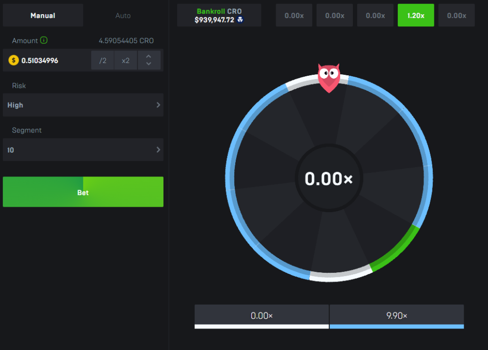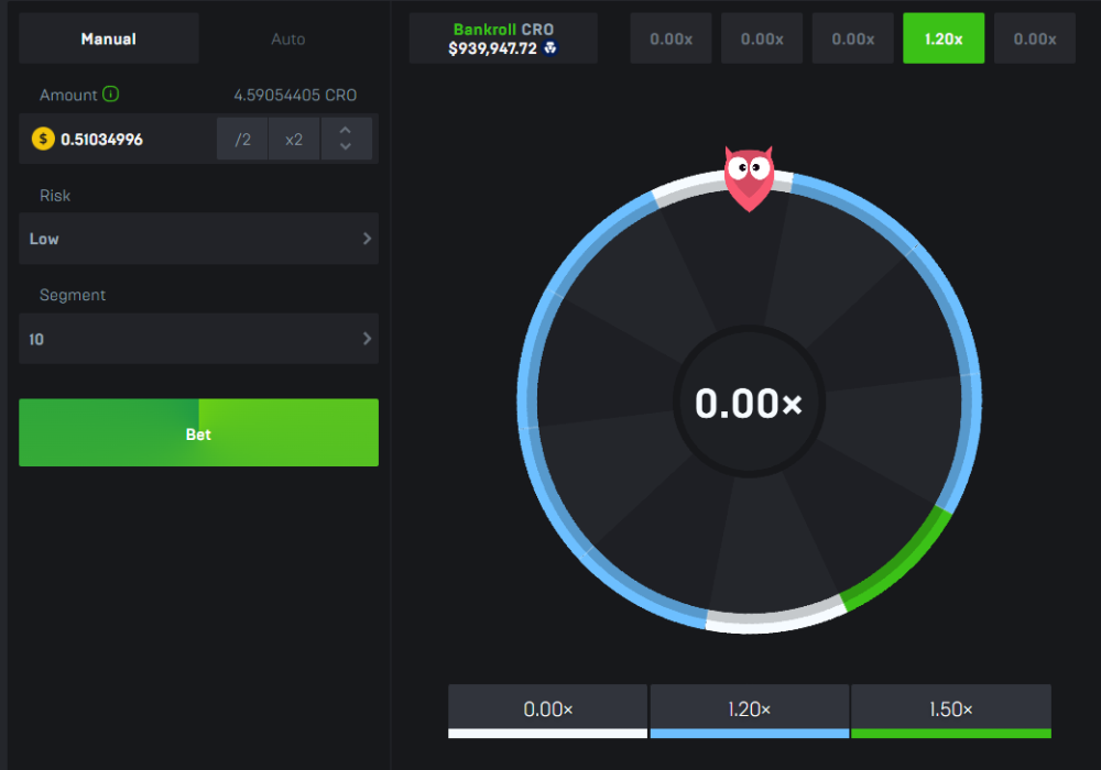 5. Place a bet on wheel, low risk. Change risk to medium or high, the wheel stays the same visually as low risk, only the payouts change.