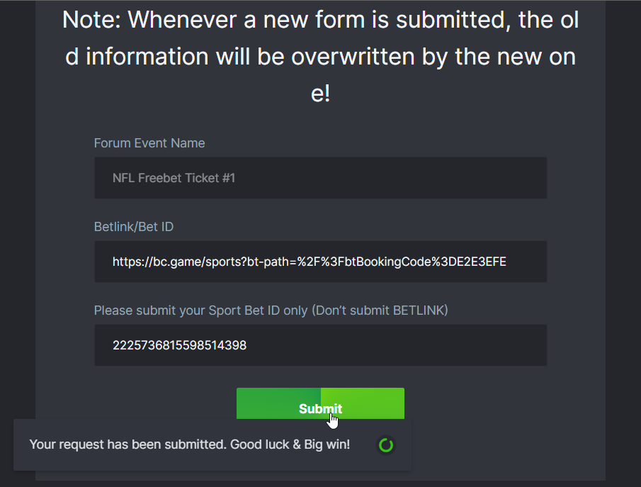5. I've joined the forum event; Now it's your turn to win generous rewards from BC.GAME! I've joined the forum event; Now it's your turn to win generous rewards from BC.GAME! Ticket id - 2225736815598514398