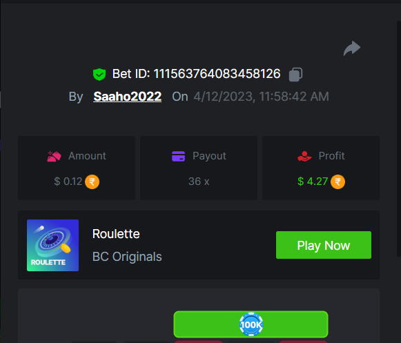 1. EASY link Classic dice 5x https://bc.game/#/sd/117EOWX3F1K1SJ Baccarat 9x https://bc.game/#/sd/117EOZ6USZT7O3 Crash 10x https://bc.game/#/sd/117EP2U6S409AR Egyptian Adventure 10x https://bc.game/#/sd/117EP9B9T7VJ83 Medium Roulette 36x https://bc.game/#/sd/117ENZMSFO2DXV Plinko 76x https://bc.game/#/sd/117EMVH8REZPJN Keno 50x https://bc.game/#/sd/117EMYPFS2740J natural BJ https://bc.game/#/sd/117ENUFTP6WAAB Hard Wheel 49.50x https://bc.game/#/sd/117EPFD06SU9EB Screenshots EASY MEDIUM HARD