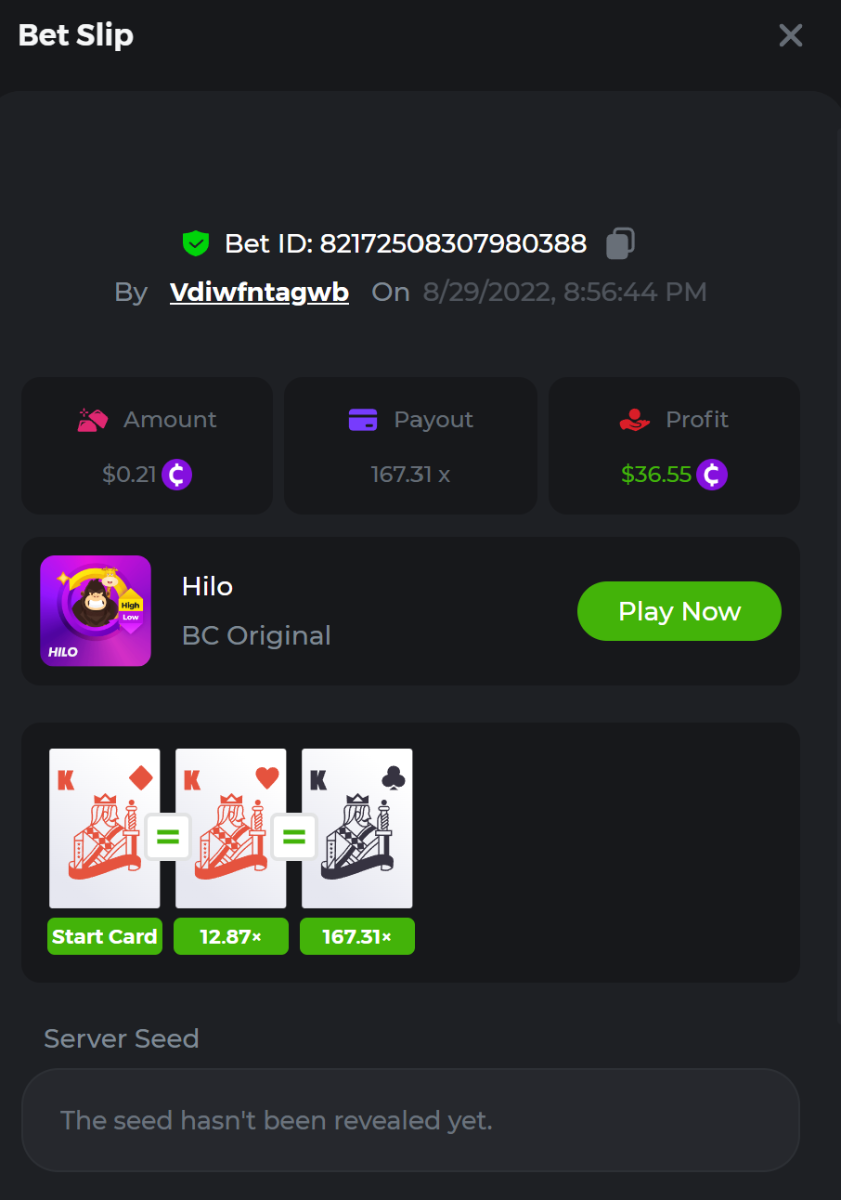 3. Bet ID: #1742056185112274304 - 141.7x https://bc.game/sd/?sd=10RJ6AFKLWDWK3 Bet ID: #1742054783176903687 - 62.1 https://bc.game/sd/?sd=10RJ4WZ7FWOXEB