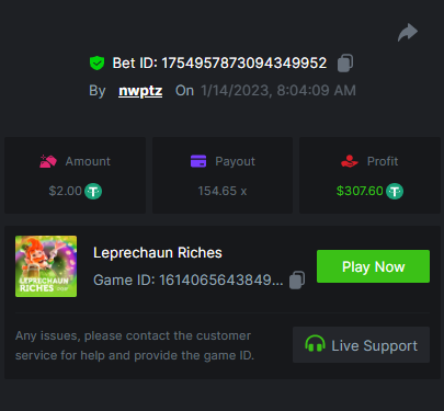 1. 1. Prosperity Fortune Tree Bet ID: https://bc.game/#/sd/111BVADCIO2BKJ Screenshot: 2. Butterfly Blossom Bet ID: https://bc.game/#/sd/1119N7L5NRG36B Screenshot: 3. Legendary Monkey King Bet ID: https://bc.game/#/sd/1115UPO0WYUDQR Screenshot: 4, Spirited Wonders Bet ID: https://bc.game/#/sd/1119O9DKLIR5EB Screenshot: 5. Supermarket Spree Bet ID: https://bc.game/#/sd/1119PMTXCPKV0Z Screenshot: 6. Candy Bonanza Bet ID: https://bc.game/#/sd/111CCUMEY4EDCJ Screenshot: 7. Destiny of Sun & Moon Bet ID: https://bc.game/#/sd/1119US1SLHM1OZ Screenshot: 8. Leprechaun Riches Bet ID: https://bc.game/#/sd/111C1ZDGLO4843 Screenshot: 9. Wild Bandito Bet ID: https://bc.game/#/sd/111662VB4AX7GZ Screenshot: 10. Wild Bounty Showdown Bet ID: https://bc.game/#/sd/1119STIAQVERKJ Screenshot: