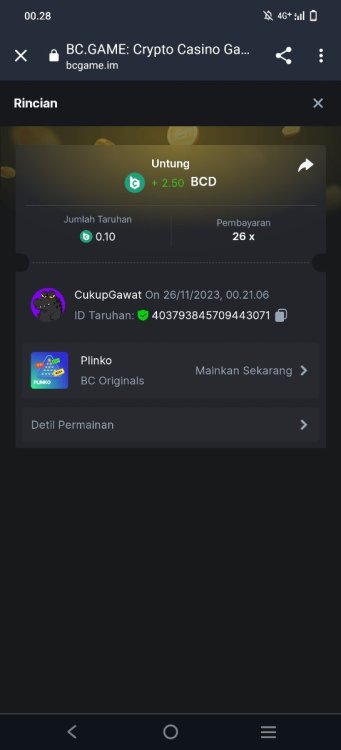 CukupGawat replied to BCGame_Maxim's topic in VIP Challenges