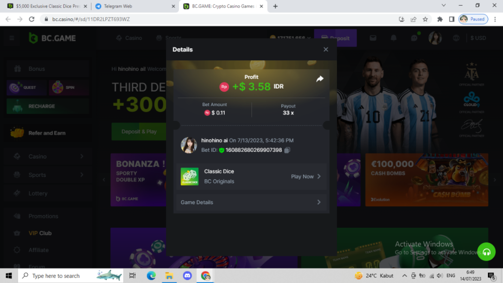 Rules!!! Anyone can join if they meet the requirements selection cannot be combine ️Minimum bet: 0.2 BCD Min. Level: VIP 14 Take screenshot and betlink Include your BC UID at the profil bio (twitter/Instagram/discord) Edited post not allowed