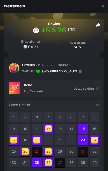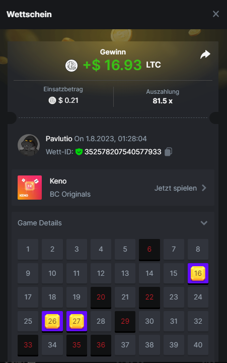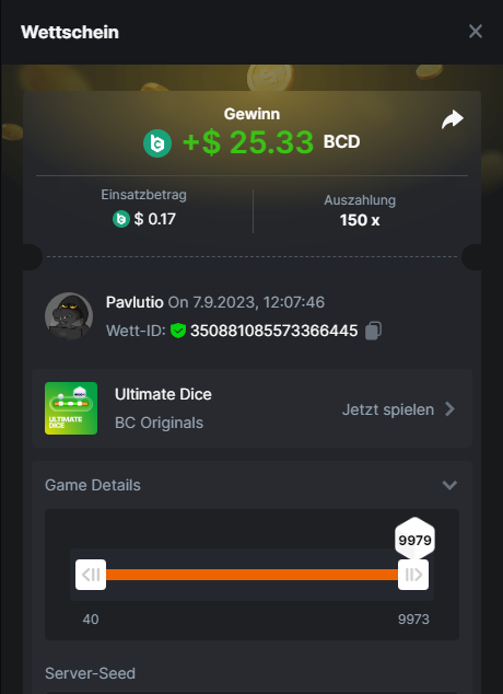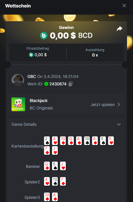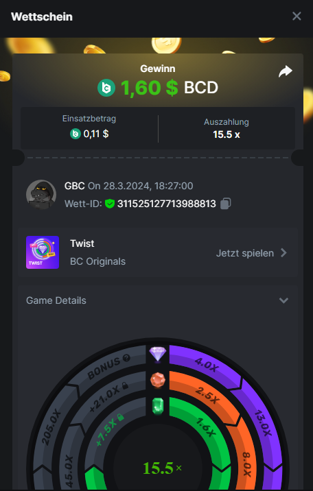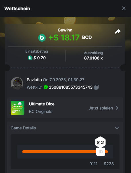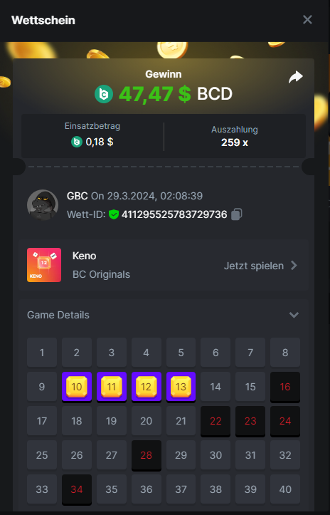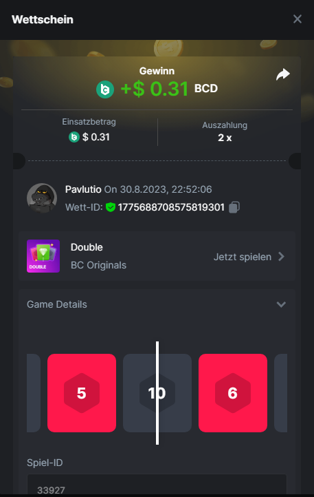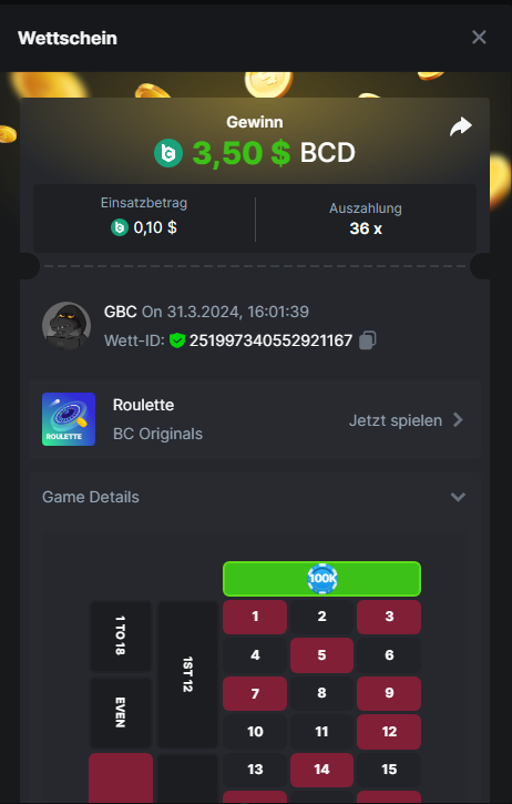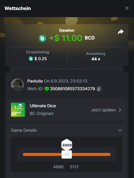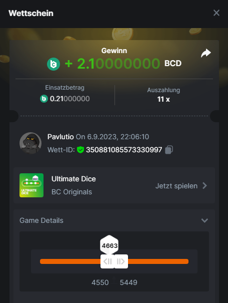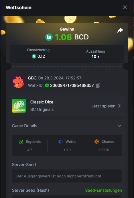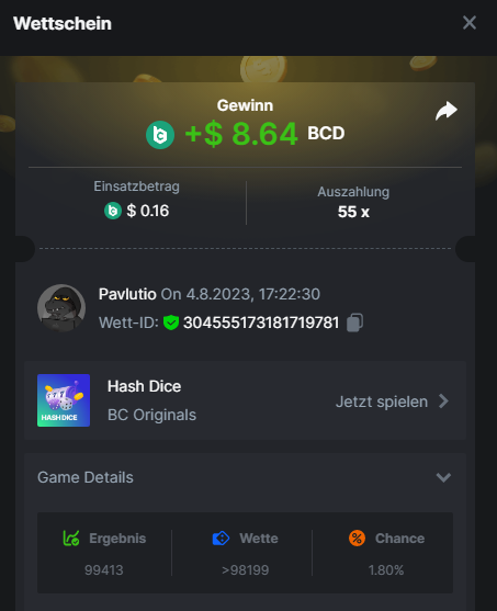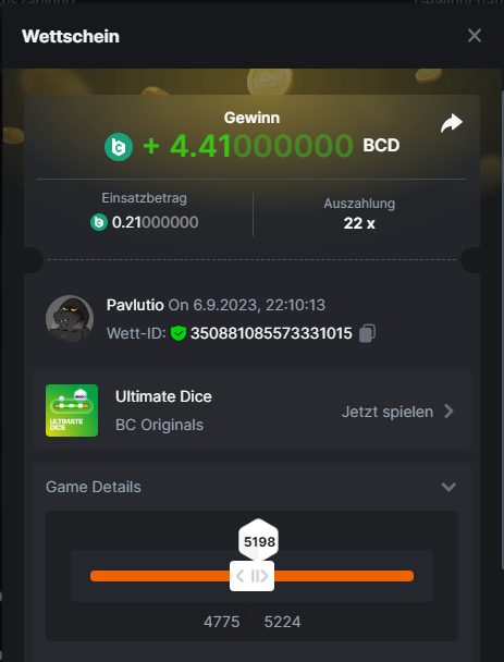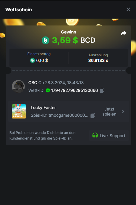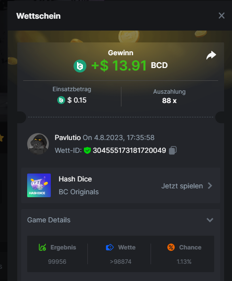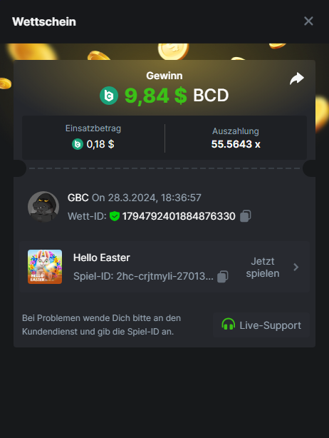 1. Classic Dice x10 https://bc.game/#/sd/11VLHRJG9EDT1F Run away Zombies 10x https://bc.game/#/sd/11VLIIWJAYVR4R Baccarat 9x https://bc.game/#/sd/11VLJ1UIYLB03N John Wild 20x https://bc.game/#/sd/11VLJCRRPWKMO7 Twist 15.5x https://bc.game/#/sd/11VLJVMYZJP89N Hello Easter 20X https://bc.game/#/sd/11VLKHQJX5UFX7 Lucky Easter 30X Red Tiger https://bc.game/#/sd/11VLKVPZ7TD0S7 Plinko 76x https://bc.game/#/sd/11VLNHKXB2B94Z Keno 50X https://bc.game/#/sd/11VLZXXWSETGEB Ring of Fortune 99X https://bc.game/#/sd/11VM109IJOCIBR Keno 259x https://bc.game/#/sd/11VMCHB3928KRF Limbo 500x https://bc.game/#/sd/11VMCSY8LKEMYV Roulette Singe 36x https://bc.game/#/sd/11VSMS95Z2L4P7 Wheel 29.7x https://bc.game/#/sd/11VSNGSS4B8GRR Bonus Bunnies 100x https://bc.game/#/sd/11VSP85GLT76DN Easter Heist 90x https://bc.game/#/sd/11VSSCFCBR49R3 Crash 10x https://bc.game/#/sd/11W08C2OE5G03B Black Jack Player 3!!! Statistik do not work correkt https://bc.game/#/sd/11W0B3OVLQ3INF
