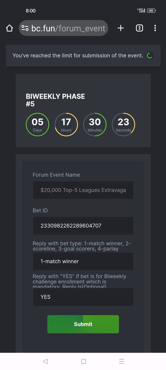 Yes please you can continue submitting new bets. Already mentioned in early reply "Try sometime latter on you would be able to submit"