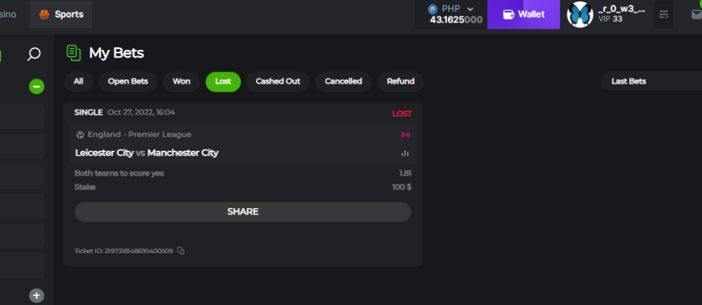 11. Ticket ID: 2193035779490587257 first game lost XD lol