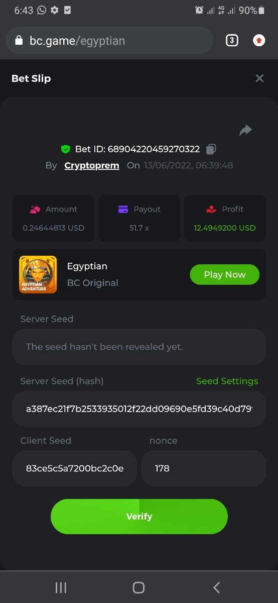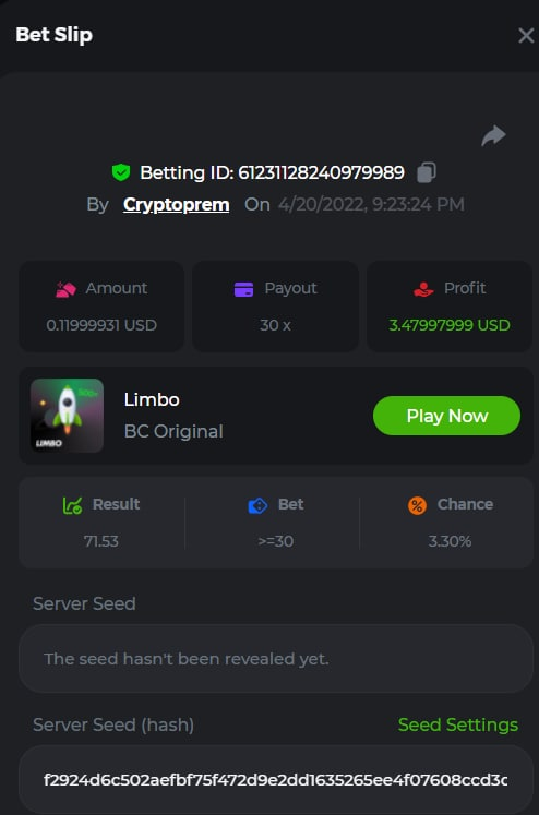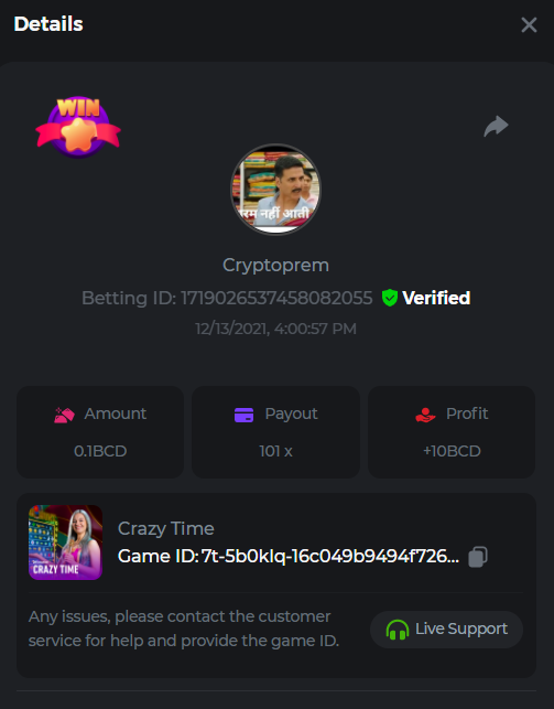 12. Cryptoprem Betting ID: 50780283103871286 569.25X
