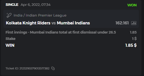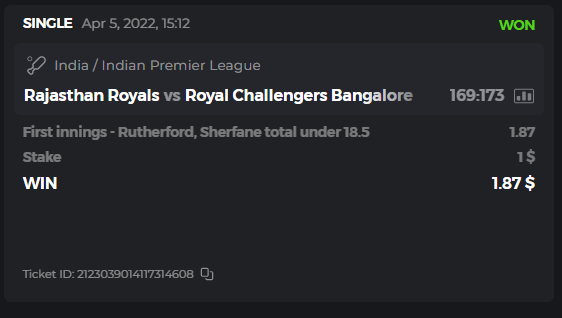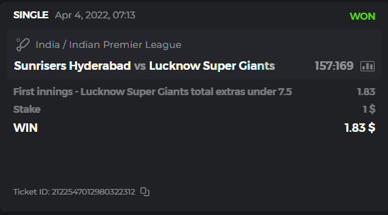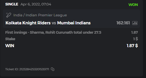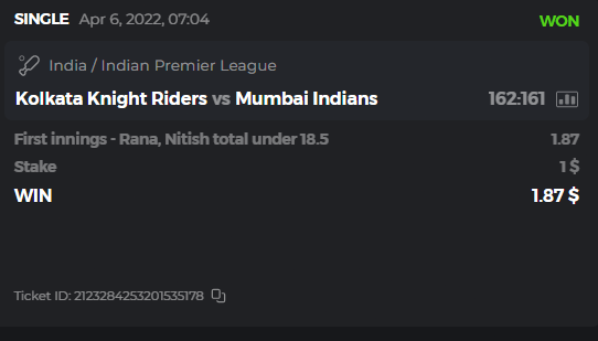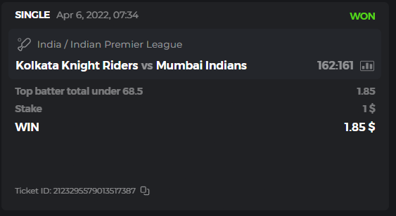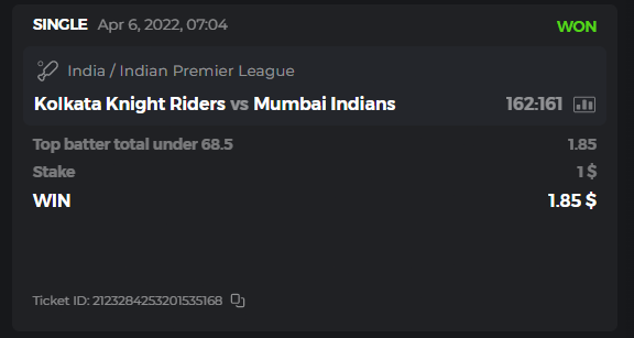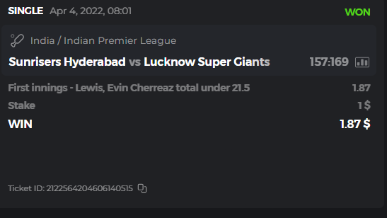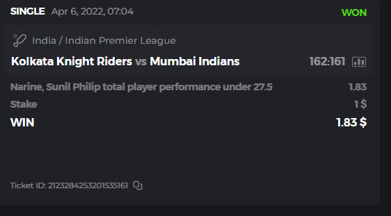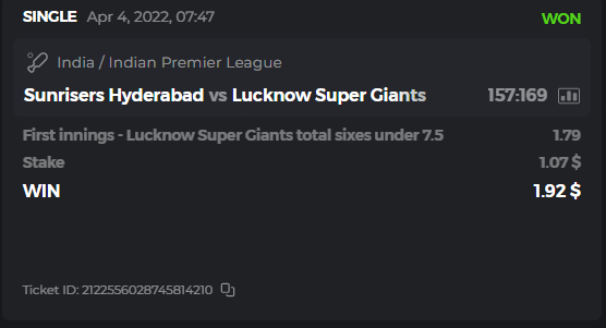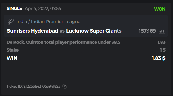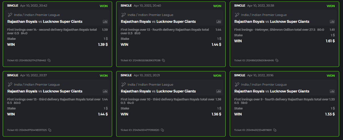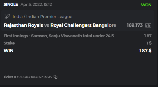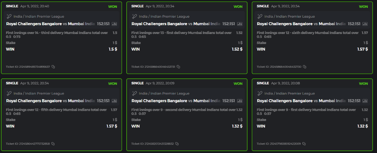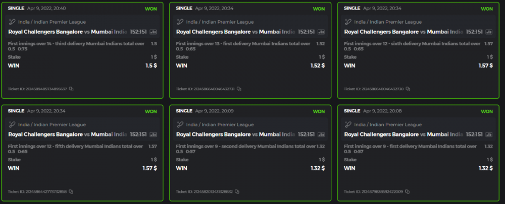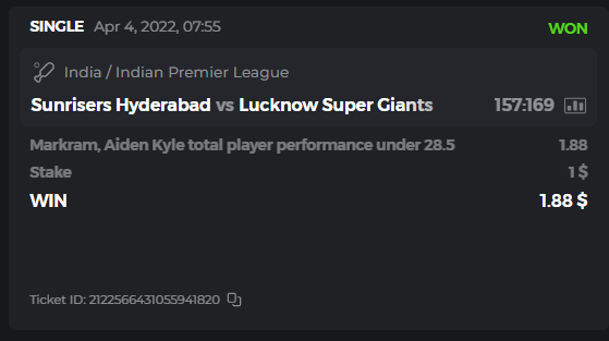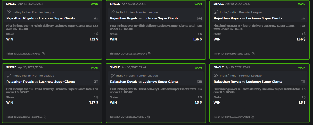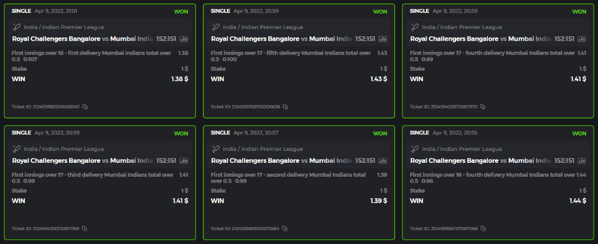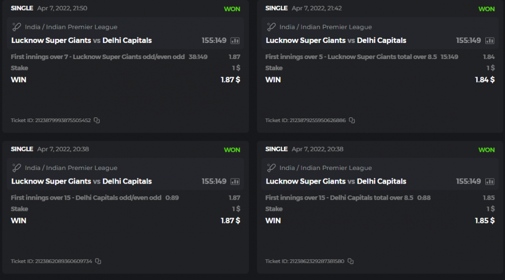 10. Well played bro but i Think your parlay combo bets are invalid because the Minimum odds pr match is 1.3 so you placed bet in combo of 4 than total odds must be atleast 2.8561 but total odds of your parlay combo bets showing 1.78 it means you have selected market lower then 1.3 in combo bet. please upload full screen shot like this of your combo bets so other competitors can see odds and can see that you have placed bets in IPl only in combo bet.. Thanks
