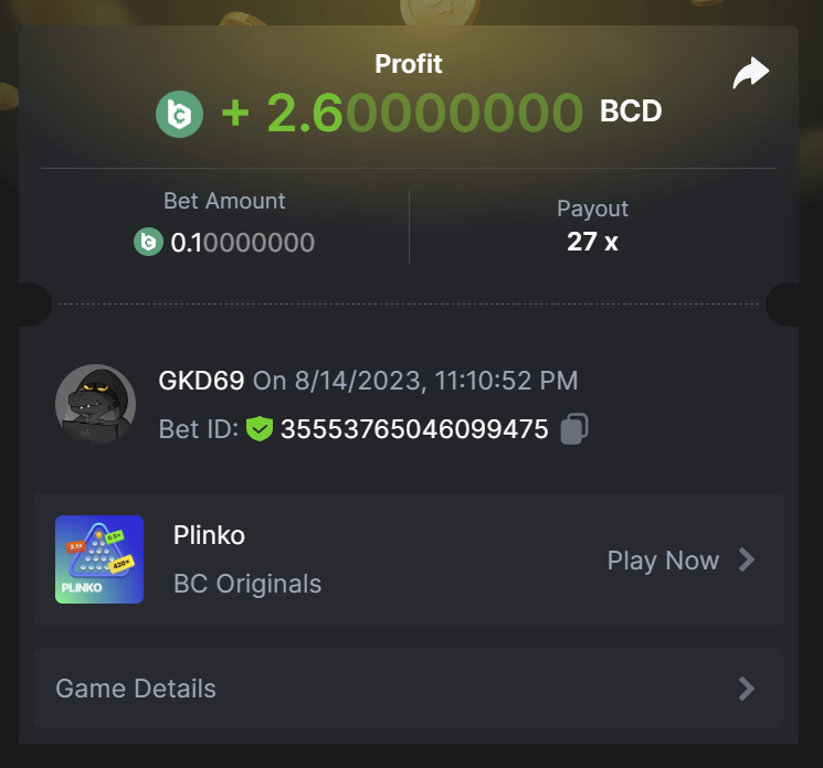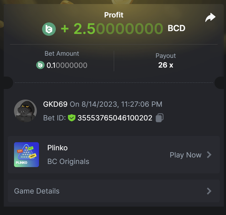 2. https://bc.game/#/sd/11PCPU9N7IY2QV BET ID: 52978331402337152