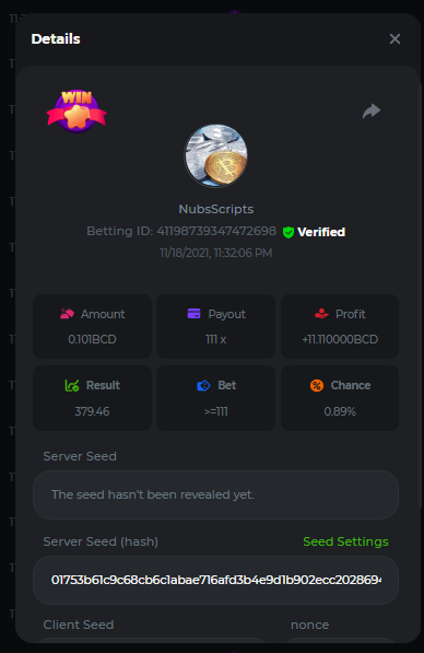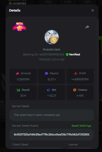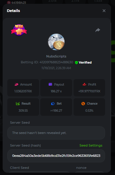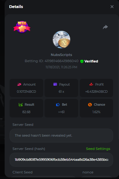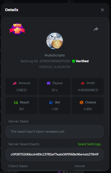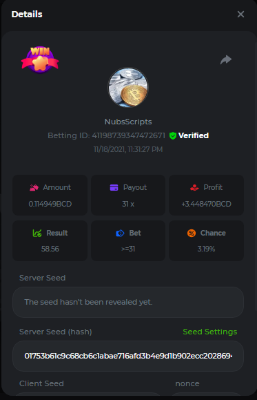 1. https://bc.game/#/sd/10VWU1B392XWR7 92526639371518610 https://bc.game/#/sd/10VXD61Y064UTV 92500650524410401 https://bc.game/#/sd/10VWXYH0HU1FDF 92934717099212931 https://bc.game/#/sd/10W3XSETYYOS9F Rounds below did not meet the minimum bet required 92500650524410561 https://bc.game/#/sd/10VWYF5BBFRMKZ