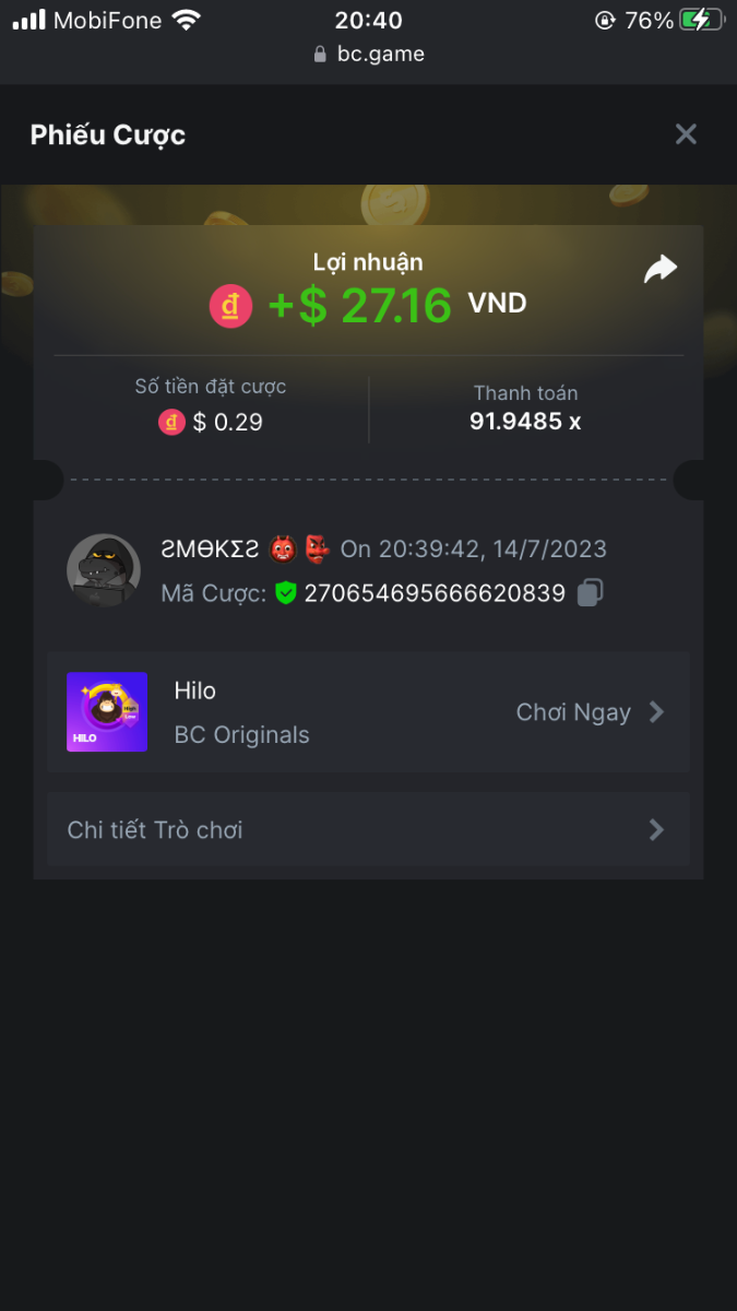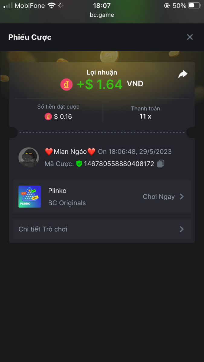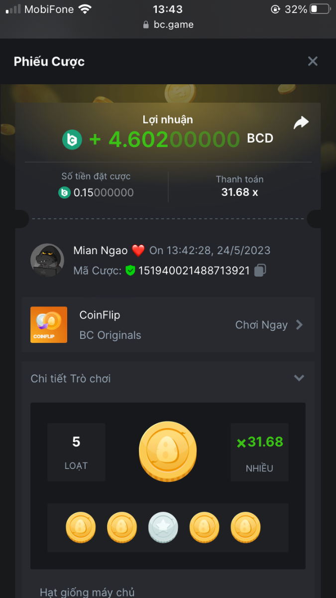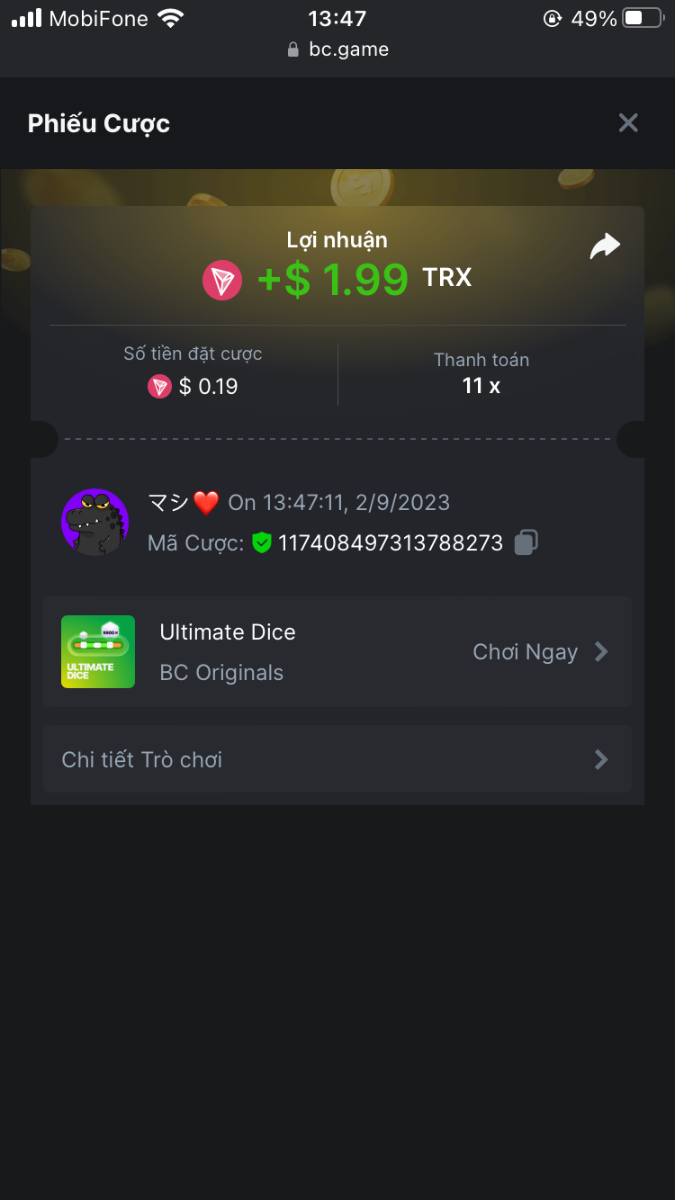 5. I've joined the forum event; Now it's your turn to win generous rewards from BC.GAME! Bet id : 2291914185115836550