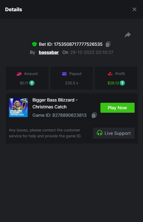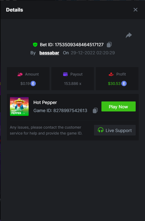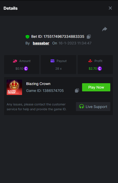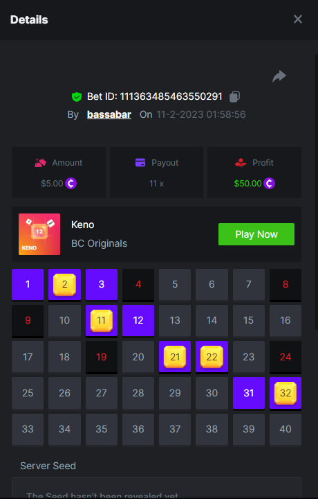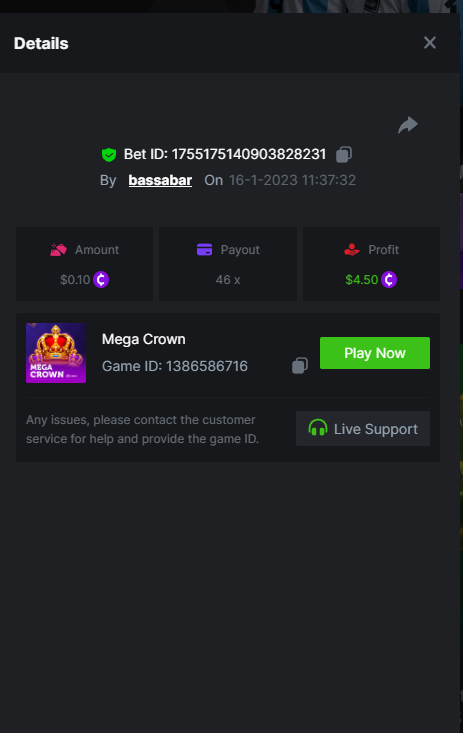 13. Highest multiplier: 1087.515x Bounty: Yes Multiplier: 1087.515x https://bc.game/#/sd/1113OPMUSHKEFN Bounty (3 consecutive kings) https://bc.game/#/sd/1111WGU1VL3OCZ