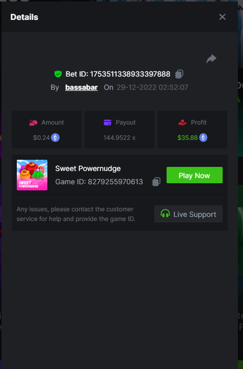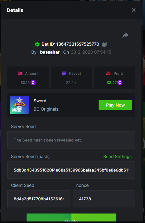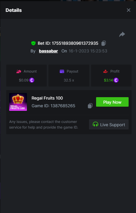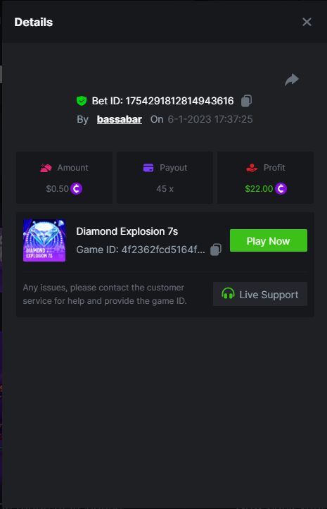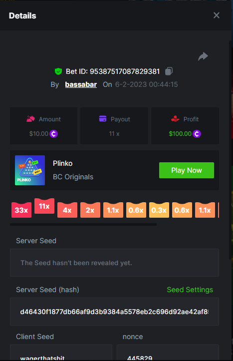 6. Streak (Yellow): 7 Bounty (49.5x b2b): Yes 1 https://bc.game/#/sd/112ZGO3KMGRQJ7 2 https://bc.game/#/sd/112ZGOR1AU9IC3 3 https://bc.game/#/sd/112ZGP346U8YDV 4 https://bc.game/#/sd/112ZGPDWHUK0LV 5 https://bc.game/#/sd/112ZGPP9R5B5SJ 6 https://bc.game/#/sd/112ZGQ0F2DJXUB 7 https://bc.game/#/sd/112ZGQDABSHKIB Overview Bounty (49.5x b2b) 1 https://bc.game/#/sd/112ZDN32CQ9Q1F 2 https://bc.game/#/sd/112ZDMMPEZ16HF