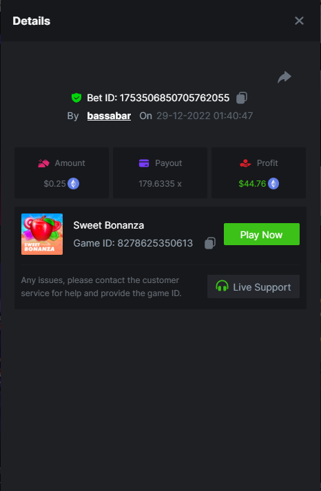 16. Total multiplier: 3234.2091x Bounty: No Sugar rush Multiplier: 321.6048x https://bc.game/#/sd/110CZINMUEXPN7 Gates of Olympus Multiplier: 260.92x https://bc.game/#/sd/110D32BG0YPEDV Sweet bonanza Multiplier: 179.6335x https://bc.game/#/sd/1108D2ETLERB4J Madame Destiny Megaways Multiplier: 222.0956x https://bc.game/#/sd/110JXASC8Q3HUB Starlight Princess Multiplier: 366.6x https://bc.game/#/sd/1108G0X7I189AR Santa’s Great Gifts Multiplier: 329.5058x https://bc.game/#/sd/110JZQDVMPQ0PF Bigger Bass Blizzard - Christmas Catch Multiplier: 235.5x https://bc.game/#/sd/1108HY4QO1M4UR Pizza! pizza? pizza! Multiplier: 200.0223x https://bc.game/#/sd/110AS657QFBE37 Sweet powernudge Multiplier: 144.9522x https://bc.game/#/sd/1108HHMI24Y3O3 Hot pepper Multiplier: 153.886x https://bc.game/#/sd/1108FJ05BC9O9F Fury of Odin megaways Multiplier: 644.4889x https://bc.game/#/sd/1108GTPPNNWD8Z Super joker Multiplier: 175x https://bc.game/#/sd/1108FTB2CAT72R