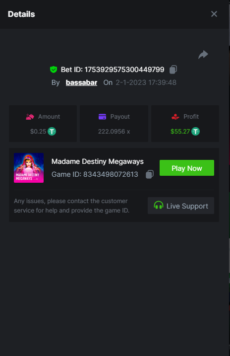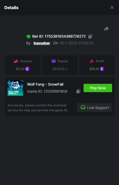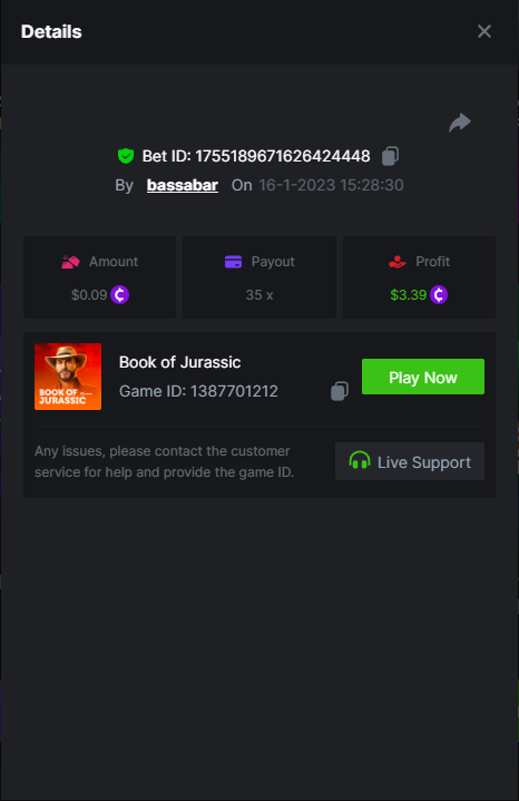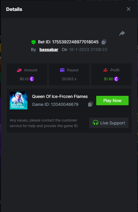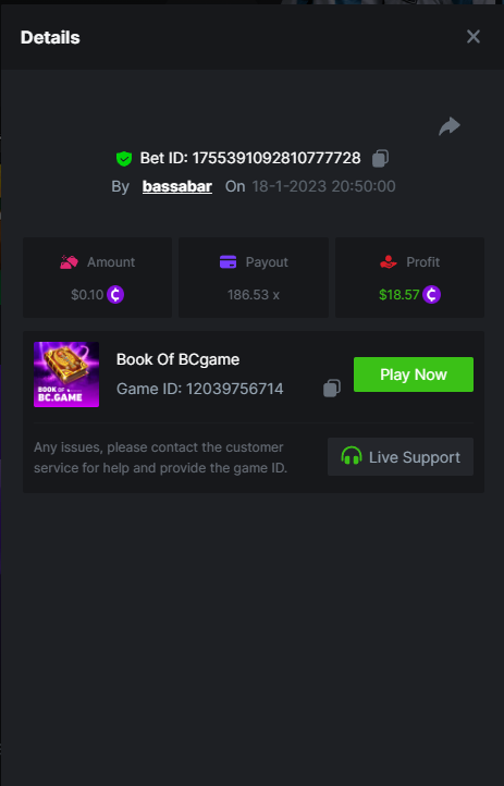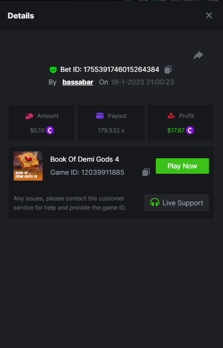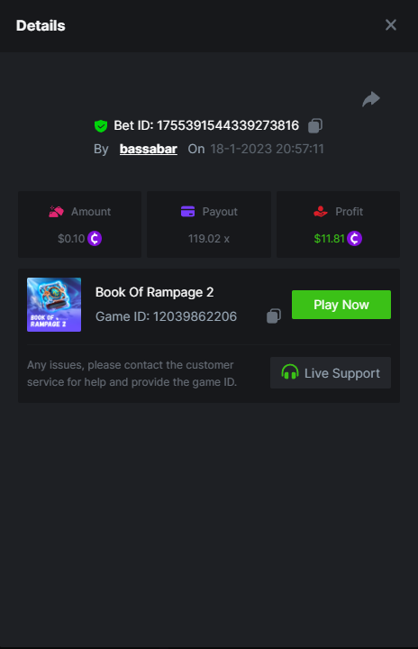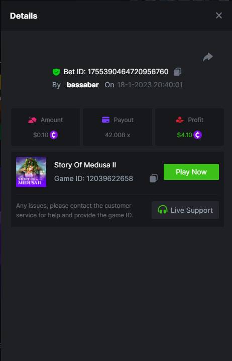 9. Total multiplier: 582.7663x Bounty (50x): No Story of Medusa 2 Multiplier: 42.008x https://bc.game/#/sd/111NVR1LIYEKUR Wolf Fang - Snowfall Multiplier: 35.6733x https://bc.game/#/sd/111NX6YB76E043 Book of BCGAME Multiplier: 186.53x https://bc.game/#/sd/111NWDF1HBDLW3 Book Of Rampage Multiplier: 119.02x https://bc.game/#/sd/111NWTG5P02CCZ Book Of Demi Gods Multiplier: 179.532x https://bc.game/#/sd/111NX0ERRQFGGJ Queen of Ice- Frozen Flames Multiplier: 20.003x https://bc.game/#/sd/111NXIDI0XVBPV