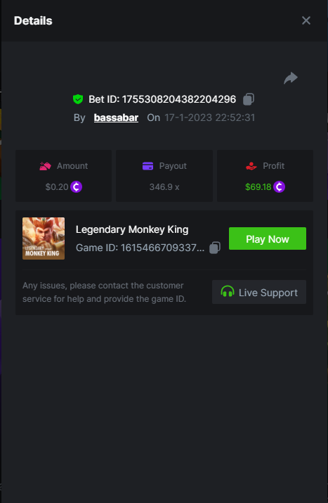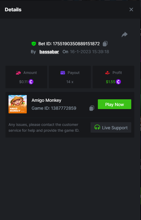 11. Total multiplier: 155.5x Amigo Monkey Multiplier: 14x https://bc.game/#/sd/111IEPPI6UTXQR Blazing Crown Multiplier: 28x https://bc.game/#/sd/111HZKGS91MB6B Book of Jurassic Multiplier: 35x https://bc.game/#/sd/111IE1F7NHDY4Z Mega Crown Multiplier: 46x https://bc.game/#/sd/111HZQEMZ4FCWJ Regal Fruits 100 Multiplier: 32.5x https://bc.game/#/sd/111IDRB7PQPSER
