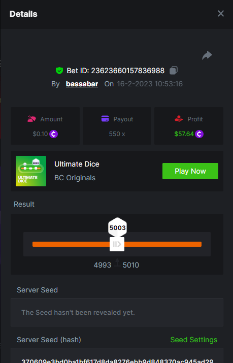 2. Highest multiplier: 1010.2301x Bounty (208.7312x): Yes Multiplier: 1010.2301x https://bc.game/#/sd/1145MOGGTLEIOJ Bounty (208.7312x): https://bc.game/#/sd/1144CW97OKZ9CJ