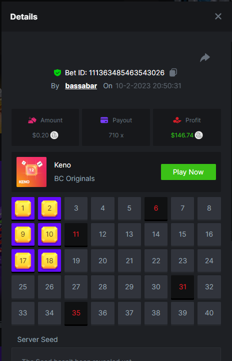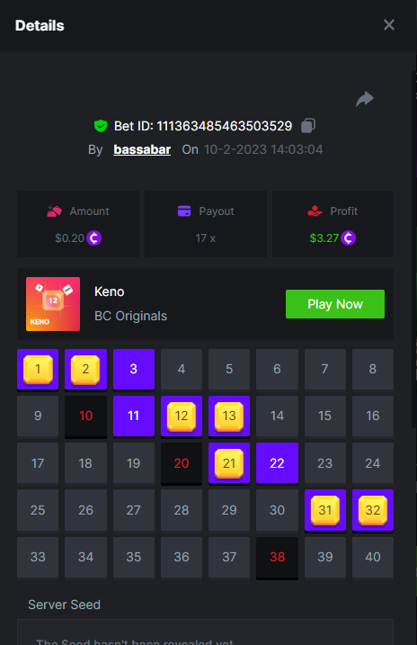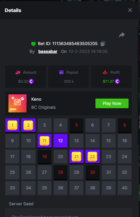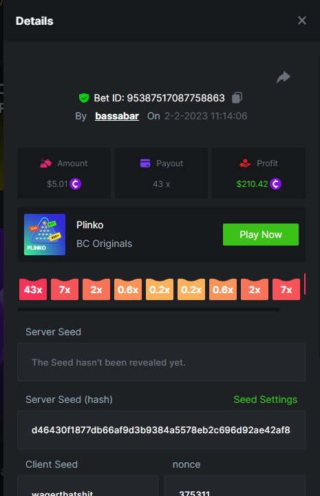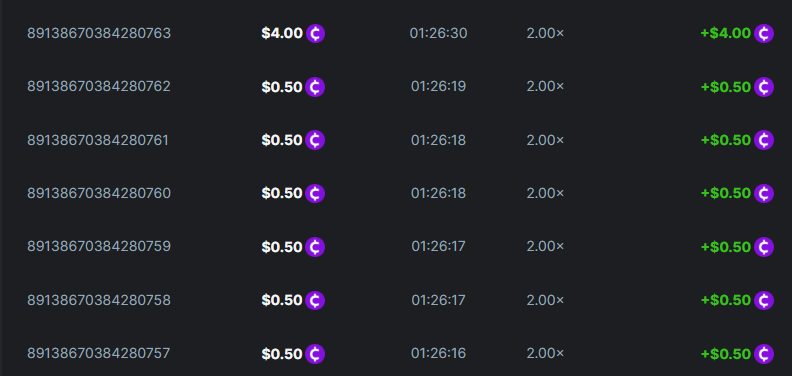 7. Total points: 17/17 Bounty (420x): Yes 11x https://bc.game/#/sd/112WWKR2CHMGPF 13x https://bc.game/#/sd/112WWHEOEW7HUB 22x https://bc.game/#/sd/112WWDA7PEY68J 29x https://bc.game/#/sd/112O2OBQZL0JDF 33x https://bc.game/#/sd/112XSOAD7JQMFN 37x https://bc.game/#/sd/112GWCG3X3GAVN 43x https://bc.game/#/sd/112O2RRBO37Q4Z 58x https://bc.game/#/sd/112HFTL9C1H8NN 76x https://bc.game/#/sd/112GW49ILSU70Z 88x https://bc.game/#/sd/112MPPDRLSY3O3 110x https://bc.game/#/sd/112R87H5BOHWCZ 120x https://bc.game/#/sd/112GWVGUY6K36B 170x https://bc.game/#/sd/112GXZUUDV24NN 260x https://bc.game/#/sd/112H62GJJ6KMXF 420x (Bounty too) https://bc.game/#/sd/112MAAMCY0RPQR 620x https://bc.game/#/sd/112NT90Y9WY3O3 1000x https://bc.game/#/sd/112Q0SN6CVF85V