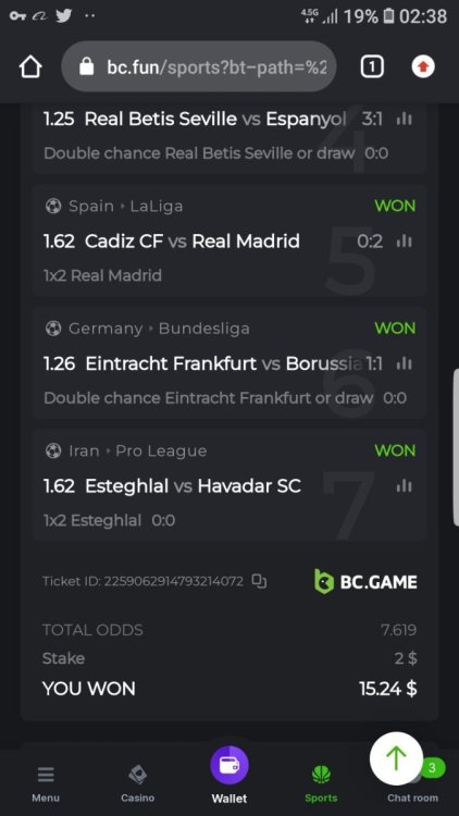 Bet ID : 1786038621089310225 https://bc.co/#/sd/11OY5ADBD5NY8R BET ID : 1786290941245085475 https://bc.co/#/sd/11P51PE0ICX5C7 BET ID : 1786292796559783457 https://bc.co/#/sd/11P53I45MT1Z5Z BET ID : 1786907320482199098 https://bc.co/#/sd/11PLWM4I1C81ZN