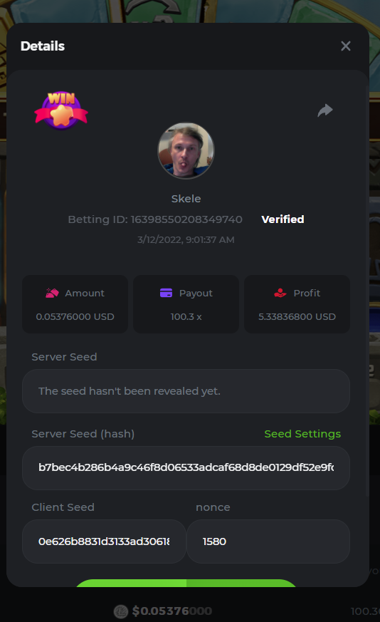 loads fine for me //******************* Nubs27's Smart Script for Crash ******************* // // // // If you find this script helpful please consider donating to Nubs27 or tipping on NanoGames.io: // Referral Link: https://n-luzqe.nanogames.io/ // // Donations accepted in many coin/token types. List & Addresses: // https://sites.google.com/view/nanogamescrashscripts/home/donation-addresses // // // var config = { mainTitle: { label: '*** Nubs27\'s Smart Script for Crash ***', type: 'title' }, auto: { label: '', value: 'Script', type: 'radio', options: [ { value: 'Script', label: 'Script chooses Base Bet'}, { value: 'Player', label: 'Player chooses Base Bet'} ]}, bet: { label: 'Base Bet', value: currency.minAmount, type: 'number' }, lossTitle: { label: 'Stop When ', type: 'title' }, stop: { label: 'Coins Lost >', value: 1, type: 'number' }, end: { label: 'Minutes >', value: 250, type: 'number' }, profit: { label: 'Profit >', value: 100, type: 'number' }, }; function main () { //PayOuts checked in the Stats Update const MultiplierArray = [2.5, 3.00, 5.00, 6.00, 7.00]; const LMultiplierArray = [10.00, 20.00, 50.00, 100.00]; var version = "v2.3"; var PayOutPercents = []; var PayOutConfidence = []; var Array2Filter = []; var FilteredArray = []; var ScriptHistory = []; var Trains = []; // Red Train IDs - finding gaps between & correlation between gap & duration var History = []; var RoundsPlayed = 0; var RoundsViewed = 0; var LastGameID = 1; var CurrentGameID = LastGameID + 1; var MinimumBet = currency.minAmount; var MaxBet = (currency.amount / 10); var TotalBets = 0; var CurrentMultiplier = MultiplierArray[1]; var LastMultiplier = MultiplierArray[1]; var MaxLossesEncountered = 3; var MostLost = 0; var LargestMulitplier = 2; var BaseBet = config.bet.value; var CurrentBet = BaseBet; var LastBet = BaseBet; var LastShrek = CurrentGameID; var LastTrain = 0; var Gap = 0; var AverageGap = 0; var LargestBet = [0,0]; var Enable100ID = 1000000; var LastResult = "Won"; var CoinLost = 0; var StopLossCoin = config.stop.value; var Losses = 0; var Wins = 0; var Red = 0; var Green = 0; var StartTime = new Date(); var EndTime = new Date(); var TimeDiff = (EndTime - StartTime); var StartBalance = currency.amount; var EndBalance = 0; var Profit = 0; var ATHProfit = 0; var ProfPerMin = 0; var NetProfit = 0; var DisplayGreeting = "False"; var GotHistory = "False"; var BetYet = "False"; var LoggedBetData = "False"; var GameInfoLogged = "False"; var StrategyFound = "False"; var IsPlaying = "False"; var UpdateBets = "False"; var Enable100 = "False"; var LastCrash = 0; var PrevCashOut = 0; var WonAmount = 0; var FindThisMultiplier = 1; var FindShouldHave = 2; var ThisAverage = 1; var HistorySlice = 50; var Paused = "True"; var IndexMax = PayOutConfidence[0]; var MaxIndex = 0; var GetNumber = 0; // Welcome the Player to the Script console.clear(); if (DisplayGreeting == "False") { log.info(' Nubs27s Smart Script for Crash'); log.info(" ****************"); log.info("See Web Console for more Information (Press F12)"); console.log('%c~~~~~~~~~~~~~~~~~ Nubs27\'s Smart Script for Crash ~~~~~~~~~~~~~~~~~','color:Purple; font-weight:bold'); console.log('%cScript Start Time: ' + StartTime,'color:Purple; font-weight:200'); console.log(' %cWelcome ' , 'color:Purple; font-weight:bold'); console.log(' %cYour Starting Balance is: ' + StartBalance + ' ' + currency.currencyName, 'color:Purple; font-weight:bold'); if (config.auto.value == 'Player') { if (config.stop.value > currency.amount) { MaxBet = (currency.amount / 10); config.stop.value = currency.amount * 0.98; console.log('%c[WARNING]: Stop Loss is above your Bankroll','color:Orange; font-weight:bold'); console.log('%c[WARNING]: Stop Loss Updated to ' + config.stop.value, 'color:Orange; font-weight:bold'); } if (config.bet.value > (config.stop.value / 15000)) { log.info('[WARNING]: Script Recommends a bankroll of at least ' + (BaseBet * 15000) + '' + currency.currencyName + ' for the Base Bet you provided'); log.info('[WARNING]: Script Recommends a bankroll of at least ' + (BaseBet * 20000) + '' + currency.currencyName + ' for the Base Bet you provided'); log.info('[WARNING]: Script Recommends a bankroll of at least ' + (BaseBet * 25000) + '' + currency.currencyName + ' for the Base Bet you provided'); } console.log(' %cYou Input: ' + BaseBet + ' ' + currency.currencyName + ' as the Base Bet', 'color:Purple; font-weight:bold'); }else{ betupdate(); console.log(' %cYour Starting Base Bet is: ' + BaseBet + ' ' + currency.currencyName, 'color:Purple; font-weight:bold'); } console.log(' %cYour Stoppers are: Coin Lost > ' + config.stop.value + '; Minutes > ' + config.end.value + '; Profit > ' + config.profit.value, 'color:Purple; font-weight:bold'); console.log('%c~~~~~~~~~~~~~~~~~~~~~~~~~~~~~~~~~~~~~~~~~~~~~~~~~~~~~~~~~~~~~~~~~~','color:Purple; font-weight:bold'); if (config.stop.value > currency.amount) { MaxBet = (currency.amount / 10); config.stop.value = currency.amount * 0.95; console.log('%c[WARNING]: Stop Loss Updated to ' + config.stop.value, 'color:Orange; font-weight:bold'); } } DisplayGreeting = "True"; if (GotHistory == "False") { getnanohistory(); GotHistory = "True"; console.log(ScriptHistory); LastShrek = []; LastTrain = []; } // // // //Everything above here only runs 1 time game.onBet = function () { console.log(' ----------------------------'); CurrentGameID = (LastGameID + 1); console.log('[Round ID]: ' + CurrentGameID); if (StrategyFound == "False") { strategy(); } //Checks User Parameters for Stopping Script checkstoppers(); CurrentBet = BaseBet; MaxIndex = Math.floor(Math.random() * MaxIndex); CurrentMultiplier = GetNumber; CurrentBet = ((CoinLost + BaseBet) / CurrentMultiplier - 1); checkbet(); if (BetYet == "False") { console.log("[Betting] " + CurrentBet.toFixed(7) + " at " + CurrentMultiplier + "x"); log.info("[Betting] " + CurrentBet.toFixed(7) + " at " + CurrentMultiplier + "x"); game.bet(CurrentBet, CurrentMultiplier).then(function (payout) { console