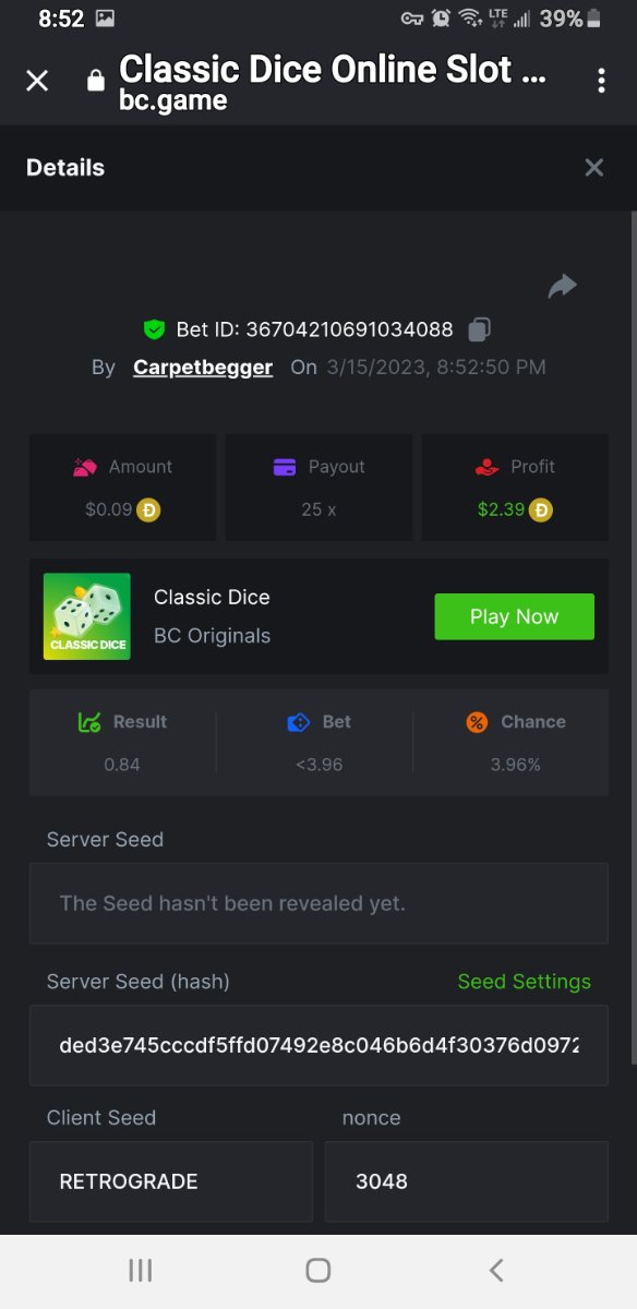 2. How about classic dice haven't gotten paid for that yet