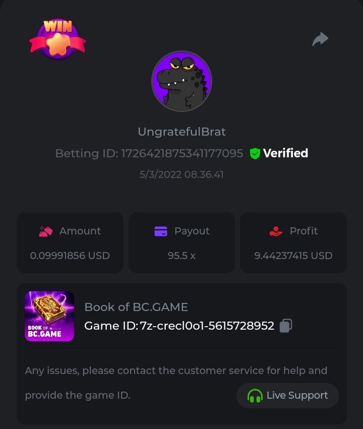 The highest multiplier of each slot so far... Lucky Dama Muerta - x516.2 Spin & Spell - x385.25 Candy Monsta - x382.25 Fruit Million - Halloween Edition - x510 Note: This isn't official results, there might be a few inaccurate data on it