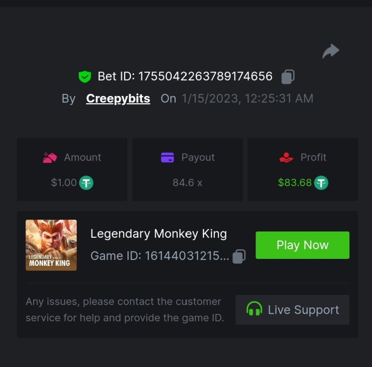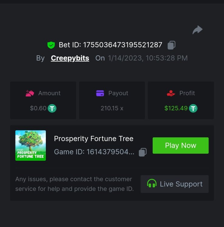 -- Just to keep track -- Wild Bounty Showdown - 945.7x Candy Bonanza - 102.4x Leprechaun Riches - 98.75x Spirited Wonders - 68.35x Butterfly Blossom - 135.44x Supermarket Spree - 152.25x Wild Bandito - 207.2x Destiny of Sun and Moon - 111.4x Prosperity Fortune Tree - 210.15x Legendary Monkey King - 84.6x -- -- -- -- -- -- -- -- -- -- -- -- https://bc.game/#/sd/111MI4BCN45A8J https://bc.game/#/sd/1118N98VQ6YOLV https://bc.game/#/sd/111FLN8H2KMUXF https://bc.game/#/sd/1117ZLODNLU13N https://bc.game/#/sd/111ASNM3GZTLOZ https://bc.game/#/sd/111E79UVO7INMB https://bc.game/#/sd/111D534T8YKE1F https://bc.game/#/sd/111ECYHMTQN09F https://bc.game/#/sd/111LTQM7BZ1TEB https://bc.game/#/sd/111D33QIXPOU1F BOUNTY