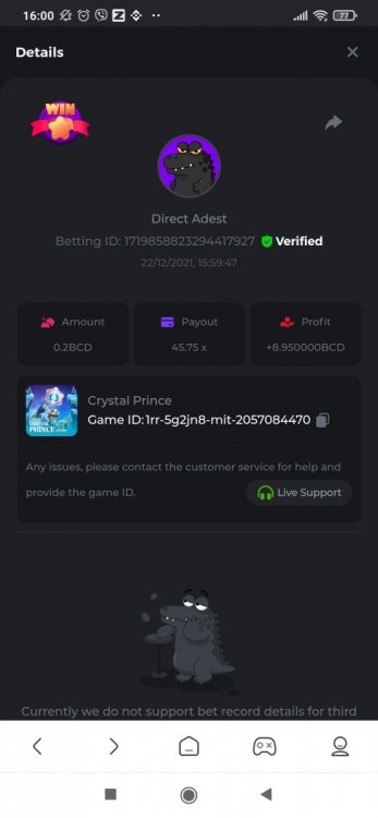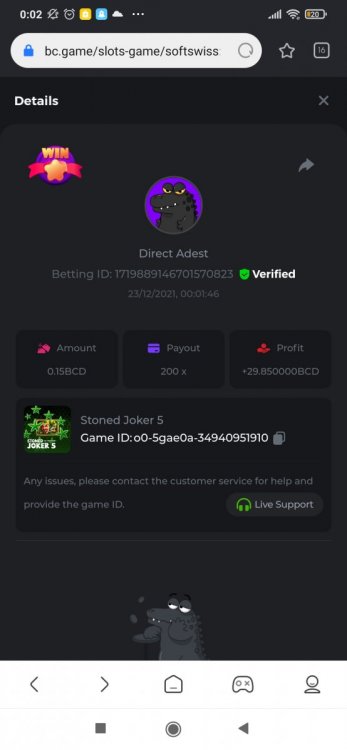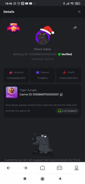 7. BGaming Aloha King Elvis 1079x Betting ID: 1719711979405323783 BetSoft Stay Frosty! 125.12x Betting ID: 1720232181555237383 GameArt Thunder Bird 125x Betting ID: 1719773651274634247 NoLimitCity Fire In The Hole xBomb 25x Betting ID: 1719843596858297472 Quickspin Crystal Prince 45.75x ID: 1719858823294417927 Playson Rise of Egypt Deluxe 84.75x ID: 1719860283160440071 Spinomenal Blue Panther Christmas Edition 75.4x ID: 1719867051949321991 Habanero Christmas Gift Rush 40x ID: 1719875274040843904 Booming Leprechaun's Lucky Barrel 328.25x ID: 1719877612368535559 Evoplay Ellen's Fortune 106.3x ID: 1719884972518772352 Ka Gaming Sky Journey 53.5x ID: 1719886920086344967 Fugaso Stoned Joker 5 200x ID: 1719889146701570823 Mascot Zeus the Thunderer 79.65x ID: 1719890709514832256 Platipus Little Witchy 22x ID: 1719894012473809415 Tom Horn 81 Frutas Grandes 94x ID: 1719928984479430407 Mancala Chinese Forest 32x ID: 1719948309797182592 Gamomat Land of Heroes 71x ID: 1719951664389513600 Booongo Wolf Saga 139x ID: 1719958039850218112 JDB Fortune Horse 40.3x ID: 1719984850682778496