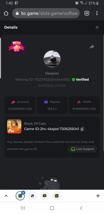 Johnny Cash 439.5 Betting ID: 1722427476926087943 Aloha King Elvis 131.19x Betting ID: 1722462397289604224 Bonanza Billion 187.6x Betting ID: 1722570472804359943 Fruit Zero 10.8x Betting ID: 1722687947688382471 Book of Cat 169.3 Betting ID: 1722783255148464512 Bounty Betting ID: 1722451866989852679 -