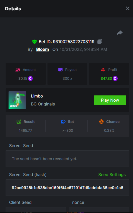 8. x506.88 multiplier + BOUNTY (9 or more) https://bc.game/#/sd/10VCFPOU65YKNN