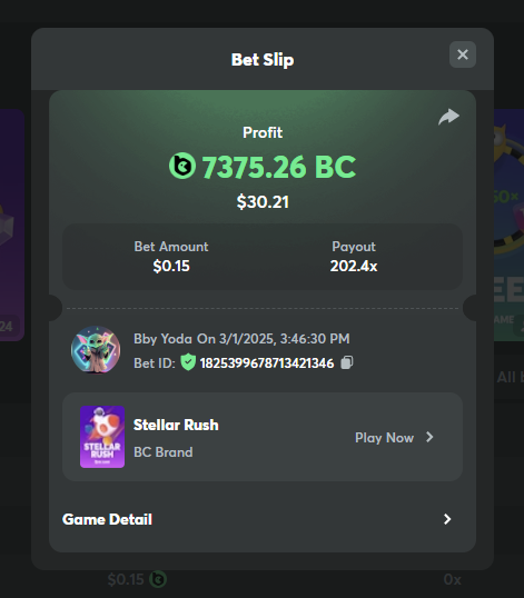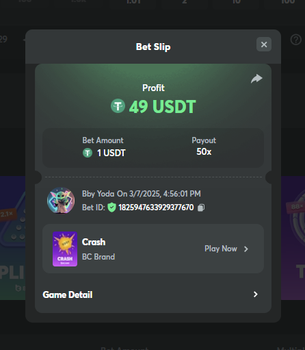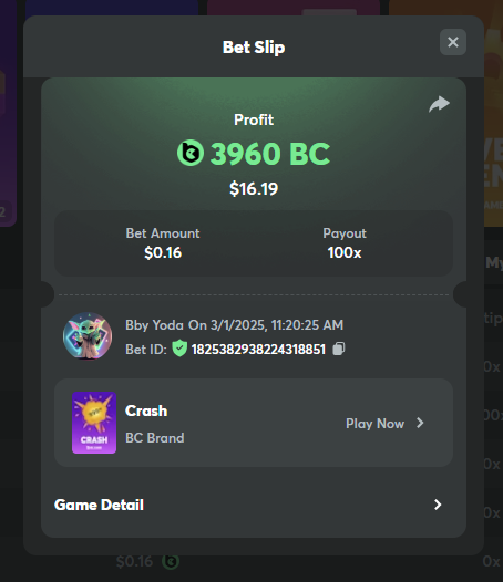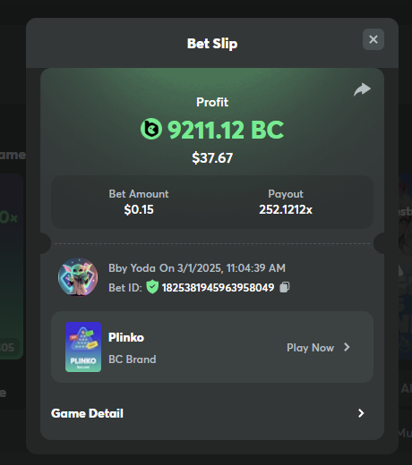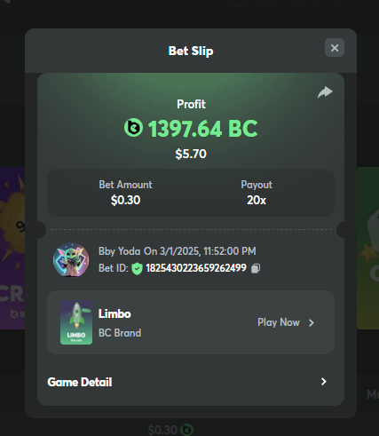 3. HARD 1. Win on Wheel 48x or higher - Row 50, Segment High. https://bc.game/game-detail/1825381028108473891 2. Score 100x or higher in the Crash game. https://bc.game/game-detail/1825382938224318851 3. Win CoinFlip game 200x or higher multiplier. https://bc.game/game-detail/1825383611262990371 4. Stellar Rush get 200x or higher in the game. https://bc.game/game-detail/1825399678713421346 5. Plinko win 252x or higher in Row 14, High Risk. https://bc.game/game-detail/1825381945963958049 6. Limbo game is your target to win 200x or higher. https://bc.game/game-detail/1825393935175424545 7. Get 200x or higher in the Hash Dice game. https://bc.game/game-detail/1825394623162498081 8. BC Originals Slot Sea Of Olympus 1000 score a win 100x or higher. https://bc.game/game-detail/1825945368781779235 9. BC Originals Slot Gold of Olympus score a win 100x or higher. 10. Get 90x or higher in the Duck Hunter slot game from NoLimitCity. https://bc.game/game-detail/1825405508850703649 11. Win a 10x+ payout on a Sports parlay/combo bet should consist on 3+ matches to qualify! Bet Id: 2512790685074207035 Medium 1. Deposit At least $100 USD 2. Get 50x in the Crash game. https://bc.game/game-detail/1825947633929377670 3. Get a payout of 73.6x on the original Plinko game Risk-High, Row-10 https://bc.game/game-detail/1825941318525539619 4. BC original Roulette Single game Win 36x on the on number 0. https://bc.game/game-detail/1825424891044944674 5. Get 50x in the BC original Starshine Princess 1000 slot game. https://bc.game/game-detail/1825941998974470178 6. BC original Stellar Rush game Win 50x in the. https://bc.game/game-detail/1825433104756547362 7. Win a 96.96x Keno bet by selecting numbers 1, 14, 22, 28 (Risk: Medium). https://bc.game/game-detail/1825424463452185121 8. Get 50x in the Poker Ways slot game. https://bc.game/game-detail/1825942652878339106 9. BC original Wukong slot game get 50x multi. 10. Buy at least 30 BC Lottery tickets using $BC Token. -or- Buy at least 2 BC Porsche lottery tickets using $BC Token send screenshot in forum post. 11. Win a sports parlay/combo bet with at least 3 matches and a 2.5x minimum payout to qualify. bet id : 2507603194100719962 Easy 1. Deposit at least $50 USD 2. Follow BC.GAME on Instagram, take a screenshot, and share it with your IG username in the forum! IG: @vladpkr 3. Share a BC.Game photo or video on your Instagram, tag us #bcgame, and drop the link with your IG username in the forum! IG: @vladpkr https://www.instagram.com/p/DGrB1nmt7gafOh4ZPSw5GmmtpAID6tAbWCXfQo0/ 4. Follow BC.GAME Twitter Take a screenshot of the following and include your Twitter username in the forum. Twitter : @BbyYodaaa 5. Like and Retweet BC.GAME's latest post and tag at least 3 of your friends. Take a screenshot and include your Twitter username in the forum. Twitter : @BbyYodaaa 6. Follow BC.GAME Facebook. Take a screenshot of the following and include your FB username in the forum. FB username : https://www.facebook.com/ciucalete.florinel 7. Win a payout of 20x on the original Limbo game. https://bc.game/game-detail/1825430223659262499 8. Win a Sports bet with a minimum payout of 1.5x odds (Only for single bets). Bet ID: 2507756112523174597 9. Get a 20x multi in the Arabian Secret slot game. https://bc.game/game-detail/1825431774221836065 10. Get a 30x multi in the Sugar Fiesta 1000 slot game. https://bc.game/game-detail/1825431475562763809 11. Activate 2FA security on your BC.Game account. Take a screenshot of 2FA and keep it active till the result is announced.