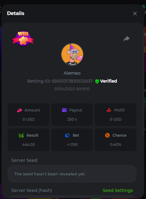 Desafio Semanal - Mines Início: 13 de Junho 18:45 -3 GMT Encerra: 20 de Junho 23:59 -3 GMT "This challenge is only for the people from the Portuguese room" Leia com atenção os termos e condições para que você fique elegível para as recompensas: Qual é o desafio? Os jogadores deverão fazer uma aposta selecionando todos os diamantes abaixo, formando um "X" (Igual ao da imagem). O jogador que conseguir o pagamento mais alto, será o vencedor. Em caso de empate, o jogador com o maior valor base de aposta será o vencedor. Se caso continue empatado, o jogador que tiver feito a APOSTA primeiro vencerá. Qualquer jogada que não esteja exatamente igual a imagem abaixo não será válida. Não selecione nenhum diamante a mais, nenhum a menos. Mas como posso obter pagamentos mais altos? Simples, você pode configurar o mines com mais bombas. Você deve configurar o mines com um mínimo de 2 bombas (Fácil) ou até o máximo de 16 bombas. Os jogadores mais corajosos podem obter pagamentos mais altos se apostando com mais bombas. Vip Mínimo: Não há vip mínimo, qualquer um pode participar. Pagamento Mínimo: O pagamento mínimo é 2.47x Mínimo de aposta: A aposta mínima é o equivalente a 0.002 USD. Moedas elegíveis: Qualquer moeda é elegível desde que cumpra o requisito mínimo de aposta citado acima. Prêmios disponíveis: 1º Lugar: 5 BCD 2º Lugar: 3 BCD 3º Lugar: 2 BCD Como entrar: Para participar, copie o link da aposta que deseja enviar. Depois de copiá-lo, cole-o como resposta a este tópico da seguinte forma: Link: https://bc.game/sd/?sd=10MLCD85OJZB4J Na mesma postagem, faça o upload de uma captura de tela de sua vitória clicando no ID do jogo COM VISUALIZAÇÃO NO modo USD ATIVADO (acessível na parte inferior do menu suspenso da sua carteira na parte superior.) Dessa forma, podemos garantir que sua aposta realmente atendeu ao requisito mínimo no momento da colocação: Por favor, combine todas as suas apostas em um ÚNICO post. Edite sua postagem caso queira colocar outra aposta, não crie uma nova postagem. Uma (1) entrada por família. Qualquer pessoa encontrada com multiconta será desqualificada deste desafio, bem como de todos os desafios futuros. As apostas devem ser feitas durante a janela de tempo especificada acima. Este tópico será bloqueado automaticamente quando o período de tempo terminar. O não cumprimento de quaisquer instruções acima resultará na nulidade do seu envio. Os pagamentos serão feitos dentro de 72 horas após a conclusão do desafio, por favor, seja paciente, prometemos que não esquecemos. Os prêmios serão pagos em BCD.