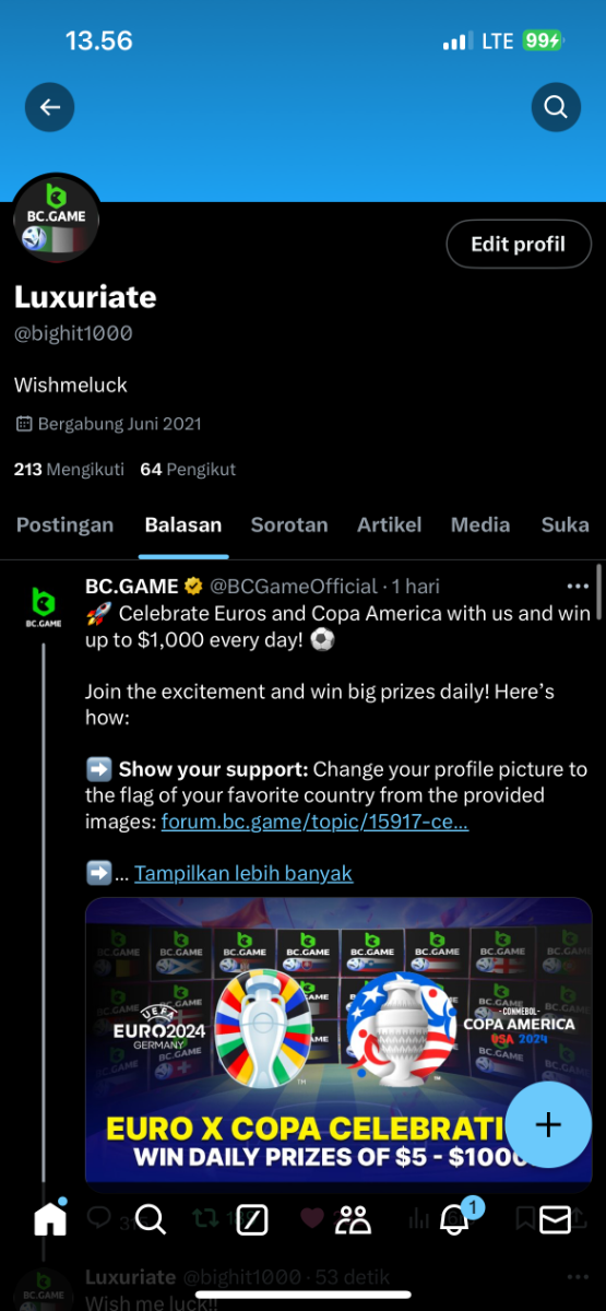 1. x account: @bighit1000 (https://x.com/bighit1000) Bcgame UID: 3125752 (https://bc.game/#/user/profile/3125752)