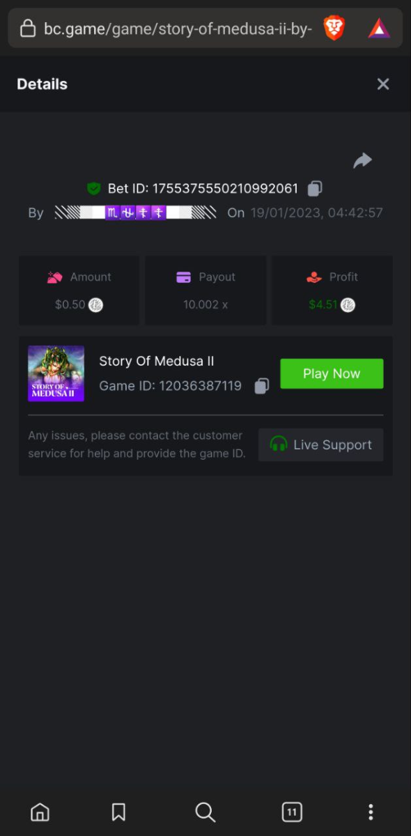 3. Book Of Demi Gods 4 15x @ $0.5 https://bc.game/#/sd/111NGW9V9C2SR7 Story Of Medusa II 10x @ $0.50 https://bc.game/#/sd/111NH4H5FCP4IB Multi Total: 25x