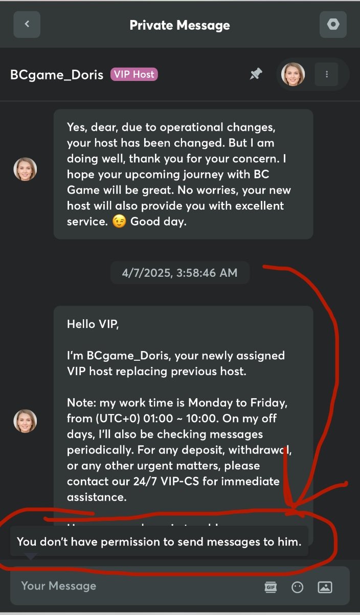 on July 1st, (my birthday) I asked support about being able to get a birthday bonus and they told me no and that I no longer have vip host services. Which is so wrong, on multiple levels. A vip host is part of the rewards you get for playing at bc.game, which I 100% put in the time, money and work to be able to have these rewards.