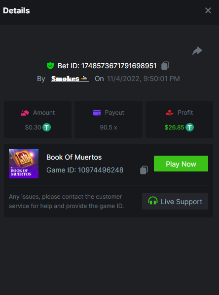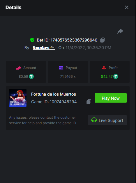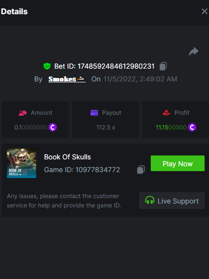 9. https://bc.game/#/sd/10WHY7B9FGP89F Book of skull - 112.5x https://bc.game/#/sd/10WHLO1SRXGHSJ retro muertos 56.25x https://bc.game/#/sd/10WHIH15IDYJ2R Fortuna de los Muertos 71.9166x https://bc.game/#/sd/10WHFZWDV94ZRN Fortuna De Los Muertos 2 - 56.25x https://bc.game/#/sd/10WHFO52879BMB Book of Muertos 90.5x