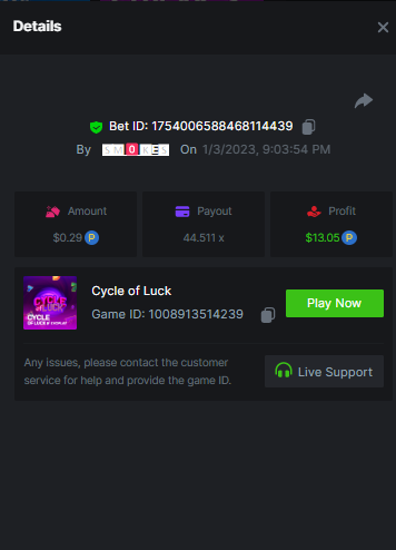 4. https://bc.game/#/sd/110M1ABM7Q6HW3 cycle of luck- 44.511x https://bc.game/#/sd/110LE1MUA3D8GJ collapse castle 43.41x