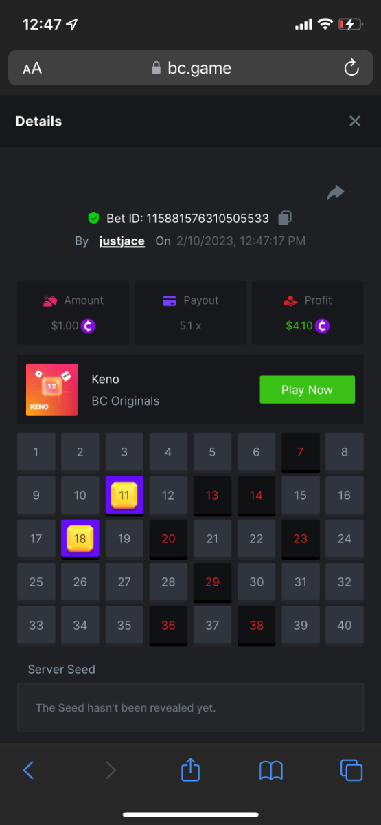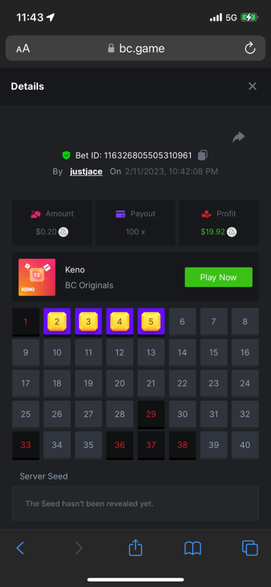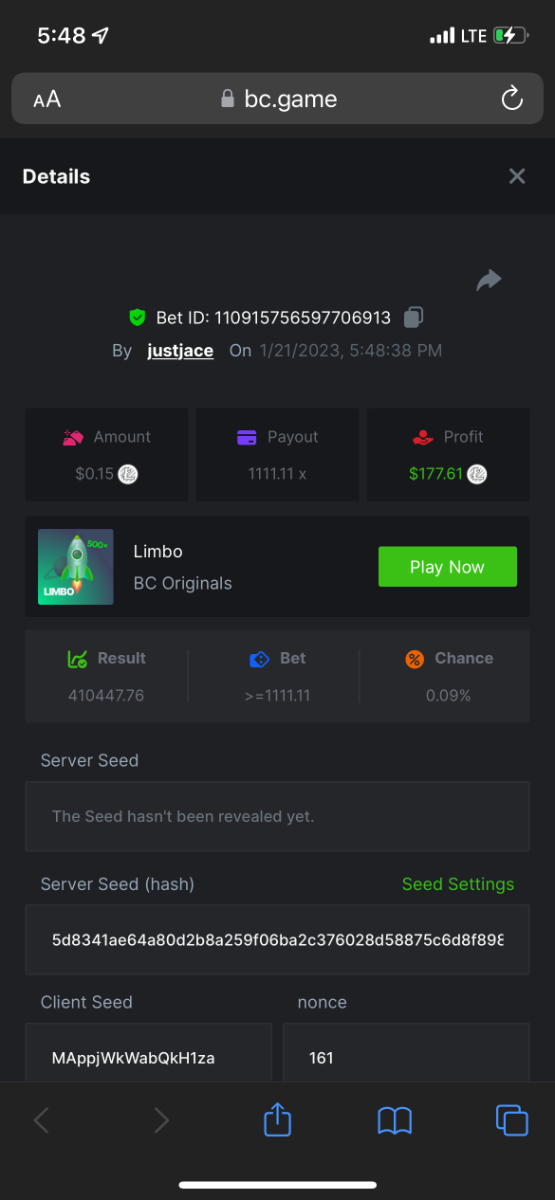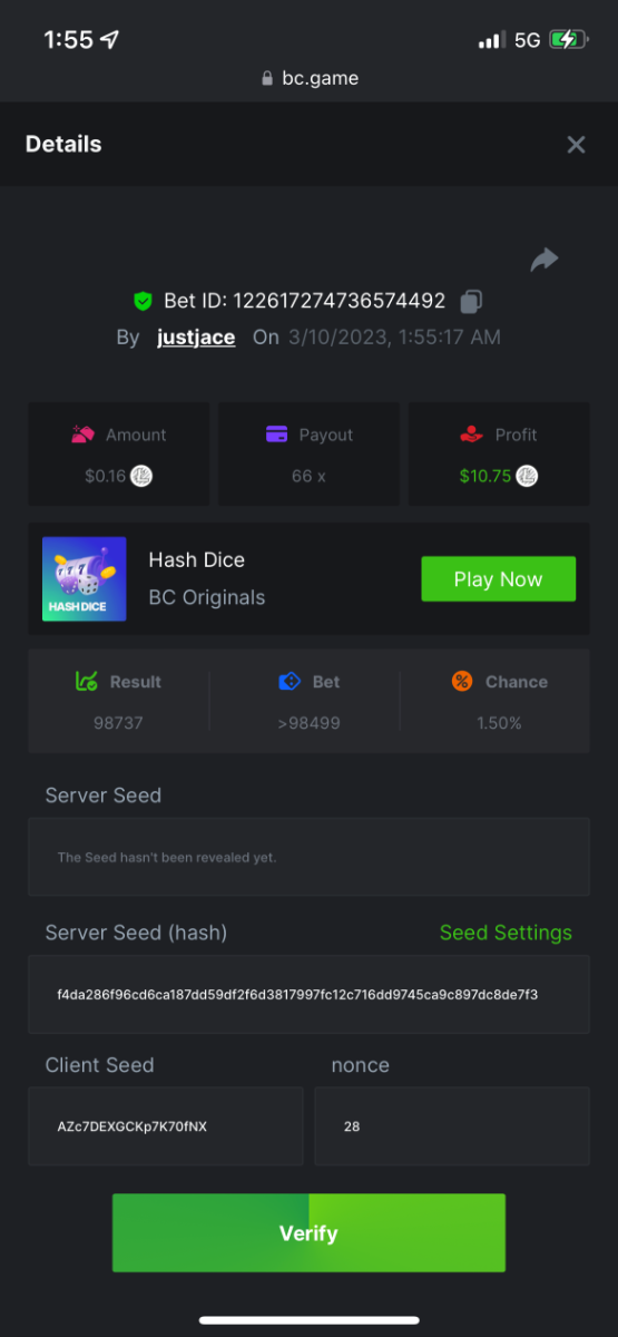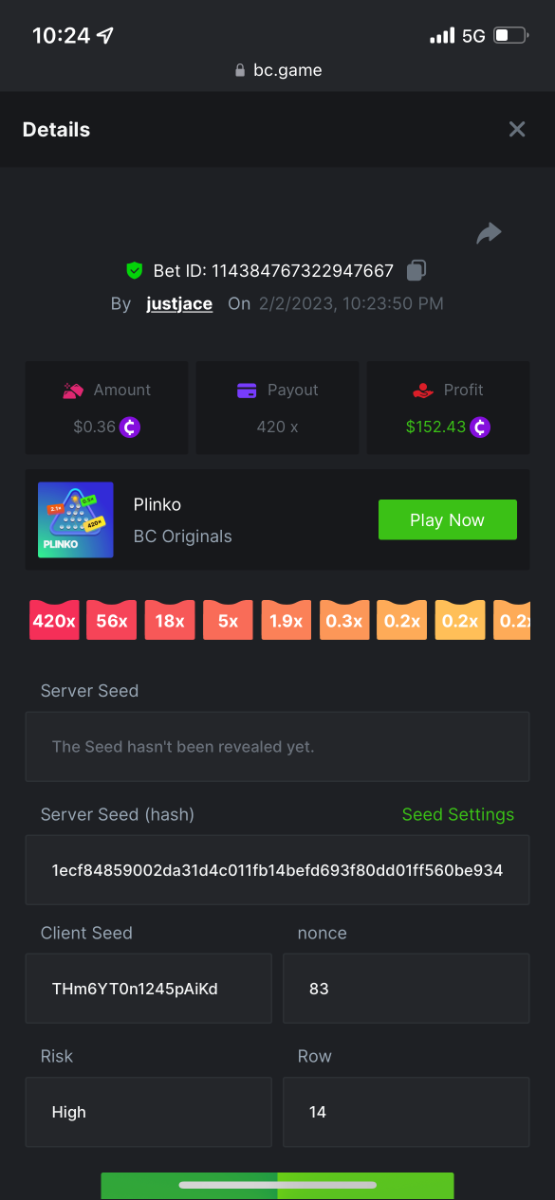 5.1x : https://bc.game/#/sd/1138ZN41M803RN 11x: https://bc.game/#/sd/1138ZWV6Q4I0IB 100x: https://bc.game/#/sd/113DU4H2V30MQB 180x: https://bc.game/#/sd/113DUHFTXSW4K3 63x: https://bc.game/#/sd/113E3M85OJT1XV -