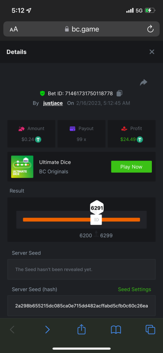 5.1x: https://bc.game/#/sd/118ROTNAR84R9V 8x: https://bc.game/#/sd/118RQVPP8BQYAB 11x: https://bc.game/#/sd/118RPW4RVZQVPV 56x: https://bc.game/#/sd/118RRFI8VER3TF 81.5x: https://bc.game/#/sd/118RS6P6T5KLJN 100x: https://bc.game/#/sd/118U0YISWJW5CJ