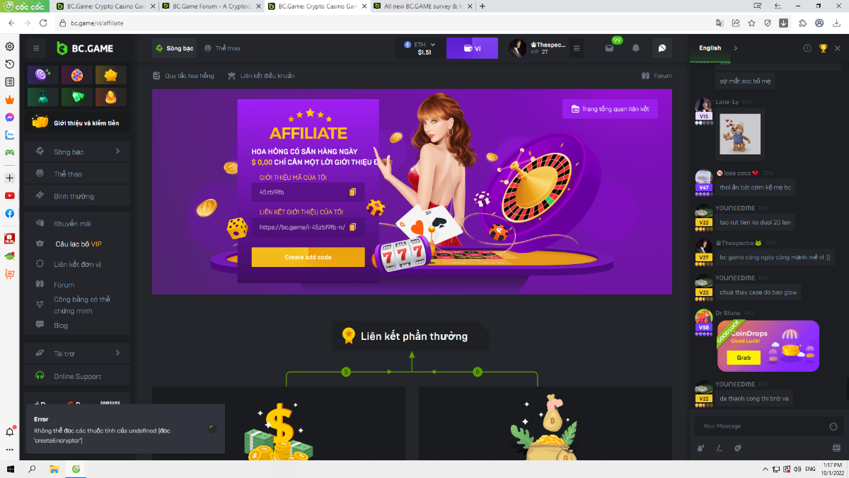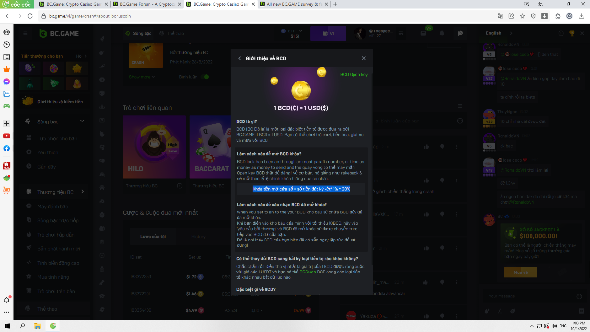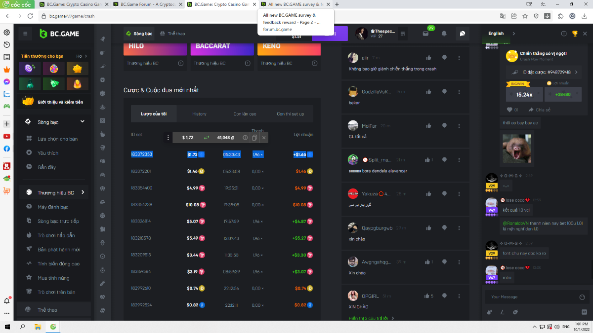 1: The first time I discovered the error was when I bet if I win or lose my money stays the same 2: please tell me why still not fix bcd unlock error i spent $4000 to unlock but i think this is $5000 to qualify 3: This update, the game auto is no longer as smooth as before because of lag 4: sports bets crashed because it can't view bets because need to login while i'm already logged into the game and reloading the site still doesn't work this is a fatal error 5: I'm Vietnamese, is this a drop error? if not then fix it ASAP as this is a casino for all players not a place to be racist if you make them 6: the betting system is slow, let's make it smoother 7: This is the next error when I get the shitlink but it fails and the website is in the same situation 8: I can for example if the user is in Vietnam, when entering the game, be on the Vietnam chat channel instead of the Global channel.
