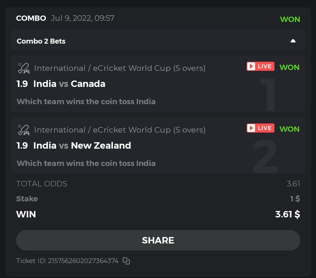 Moderator Mat Posted July 5, 2022 Moderator Share Posted July 5, 2022 $250 - BC.GAME SPORTS PARLAYS CHALLANGES #11 Start: 05, July 00:00 UTC Ends: 10, July 23:59 UTC Hello, ladies and gentleman! Sports Parlay Challenges #5! With a prize pool of $150, the Top 5 takes home a grand prize, and the remaining $40 will be split among all other entrants! What is the challenge? Place a Sports Parlay/Combo Bet to qualify for the challenge Only 1 parlay per match. A parlay consists of two or more sports bets on a single ticket with a higher multiplier. The ODDS for each game will be added up and counted as total points. Minimum VIP No Minimum VIP Level Minimum payment There is no minimum multiplier, however, only the top 5 winning parlay multipliers will win the grand prize! Minimum bet size Equivalent to US$ 0.50 Eligible currencies All cryptocurrencies are eligible (except JB) Rewards available 1st place.......$70 2nd place.....$50 3rd Place...... $30 4th Place...... $20 5th Place...... $10 6th Place...... $5 7th Place...... $5 The remaining $60 will be split among all other participants who meet the minimum requirements and minimum stake. How to enter: To participate, post your Ticket ID, along with your Parlay link, as a reply to this thread as follows: Link bet: https://bc.game/sports/?bt-path=%2F%3FbtBookingCode%3D561A9D1 + Ticket ID 2126602890796736992 If you don't know how to get your sports betting link, go here! Along with the screenshot of your accumulated ticket. Ticket ID 2126602890796736992 If a selection results in a void or push, the bet will remain eligible as long as it remains equal to or greater than a triple bet and meets the odds requirements. Bets withdrawn will not be counted. Hedging is strictly not allowed Please combine all your hits into a SINGLE post. Edit your existing post to get additional hits, don't create a new post. Bets must be placed during the time window specified above. This thread will automatically lock when the time period ends. One (1) entry per family. If someone finds multiple prizes, they will be disqualified from the challenge as well as all future challenges. Failure to follow the instructions will result in the cancellation of your submission. By entering this challenge, you acknowledge that BC.Game has final decision rights over results and placement. All prizes will be paid out in BCD within 72 hours of completing the challenge. Link to comment Share on other sites More sharing options...