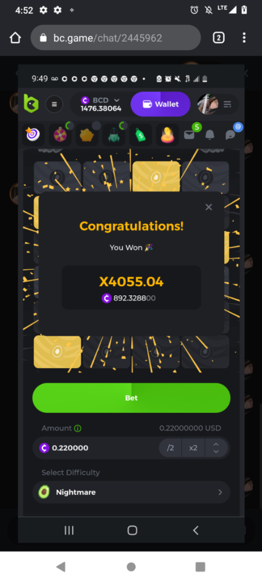 Just1Littl3Beanz Posted October 31, 2022 Share Posted October 31, 2022 All in 1st bet Roulette Hit same bet 5times in 20 bets.Good day this was 2 minutes ago, BeansBeast2Day said: All in 1st bet Roulette Hit same bet 5times in 20 bets.Good day this was otherwise payout was 33182 xlm Had 4numbers picked number 4 for 259/1 and changed bet 2goes before.... Link to comment Share on other sites More sharing options...