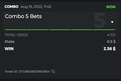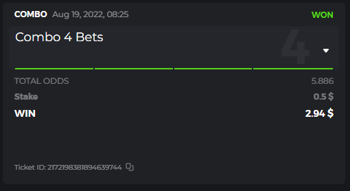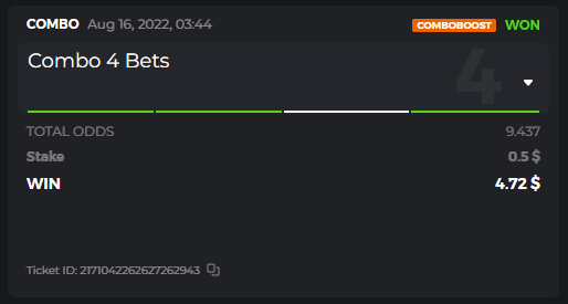 Moderator Mat Posted August 14, 2022 Moderator Share Posted August 14, 2022 $250 BC.GAME SPORTS PARLAYS CHALLANGES #17 Start: 15, Aug 00:00 UTC Ends: 21, Aug 23:59 UTC Hello, ladies and gentleman! Sports Parlay Challenges #17! With a prize pool of $250, the Top 7 takes home a grand prize, and the remaining $60 will be split among all other entrants! What is the challenge? Place a Sports Parlay/Combo Bet to qualify for the challenge Only 1 parlay per match. A parlay consists of two or more sports bets on a single ticket with a higher multiplier. The ODDS for each game will be added up and counted as total points. Minimum VIP No Minimum VIP Level Minimum payment There is no minimum multiplier, however, only the top 5 winning parlay multipliers will win the grand prize! Minimum bet size Equivalent to US$ 0.50 Eligible currencies All cryptocurrencies are eligible (except JB) Rewards available 1st place.......$70 2nd place.....$50 3rd Place...... $30 4th Place...... $20 5th Place...... $10 6th Place...... $5 7th Place...... $5 The remaining $60 will be split among all other participants who meet the minimum requirements and minimum stake. How to enter: To participate, post your Ticket ID, along with your Parlay link, as a reply to this thread as follows: Link bet: https://bc.game/sports/?bt-path=%2F%3FbtBookingCode%3D561A9D1 + Ticket ID 2126602890796736992 If you don't know how to get your sports betting link, go here! Along with the screenshot of your accumulated ticket. Ticket ID: 2126602890796736992 If a selection results in a void or push, the bet will remain eligible as long as it remains equal to or greater than a triple bet and meets the odds requirements. Bets withdrawn will not be counted. Hedging is strictly not allowed Please combine all your hits into a SINGLE post. Edit your existing post to get additional hits, don't create a new post. Bets must be placed during the time window specified above. This thread will automatically lock when the time period ends. One (1) entry per family. If someone finds multiple prizes, they will be disqualified from the challenge as well as all future challenges. Failure to follow the instructions will result in the cancellation of your submission. By entering this challenge, you acknowledge that BC.Game has final decision rights over results and placement. Link to comment Share on other sites More sharing options...