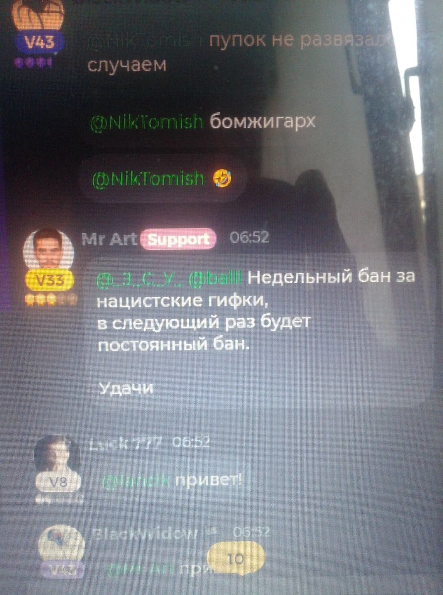 Дайте бан или уберите ЄТОГО ЧЕЛА С ПОСАДЫ!!!За гифку в чате от казино ДАЛ МНЕ БАН НА НЕДЕЛЮ!!!УБИРИТЕ ЄТОГО ЧЕЛОВЕКА!!!ИЛИ ПУСКАЙ УЧИТ ПРАВИЛА итд...