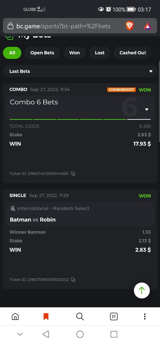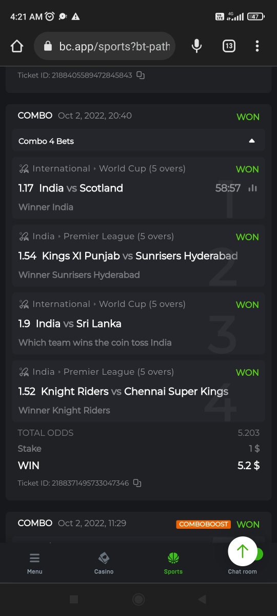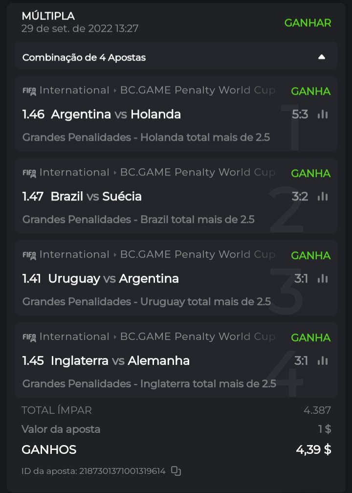 Moderator Mat Posted September 25, 2022 Moderator Share Posted September 25, 2022 $250 BC.GAME SPORTS PARLAYS CHALLENGES #23 Start: 26, Sep 00:00 UTC Ends: 02, Oct 23:59 UTC Hello, ladies and gentleman! Sports Parlay Challenges #23! With a prize pool of $250, the Top 7 takes home a grand prize, and the remaining $60 will be split among all other entrants! What is the challenge? Win a multi-bet with at least x4 by betting on at least 4 matches (all sports) All bet slips must be posted open! Any closed published bet slip will be disregarded! The ODDS for each game will be added up and counted as total points. Voided, half-loss, and half-win bets aren't eligible for the challenge! Cashed-out bets aren’t eligible for the challenge. Using the same odds on a single bet slip isn't allowed Providing the bet link isn’t mandatory Minimum VIP No Minimum VIP Level Minimum payment Multiplier minimum 4x, however, only the top 7 winning parlay multipliers will win the grand prize! Minimum bet size Equivalent to U$$1 Eligible currencies All cryptocurrencies are eligible (except JB) Rewards available 1st place.......$70 2nd place.....$50 3rd Place...... $30 4th Place...... $20 5th Place...... $10 6th Place...... $5 7th Place...... $5 The remaining $60 will be split among all other participants who meet the minimum requirements and minimum stake. How to enter: To participate, post your Ticket ID, along with your Parlay link, as a reply to this thread as follows: Link bet: https://bc.game/sports/?bt-path=%2F%3FbtBookingCode%3D561A9D1 + Ticket ID 2126602890796736992 Along with the screenshot of your accumulated ticket. See how to get your sports bet link below! https://imgur.com/a/BRSyxVE Ticket ID 2126602890796736992 If a selection results in a void or push, the bet will remain eligible as long as it remains equal to or greater than a triple bet and meets the odds requirements. Bets withdrawn will not be counted. Please combine all your hits into a SINGLE post. Edit your existing post to get additional hits, don't create a new post. Bets must be placed during the time window specified above. This thread will automatically lock when the time period ends. One (1) entry per family. If someone finds multiple prizes, they will be disqualified from the challenge as well as all future challenges. Failure to follow the instructions will result in the cancellation of your submission. By entering this challenge, you acknowledge that BC.Game has final decision rights over results and placement. Link to comment Share on other sites More sharing options...