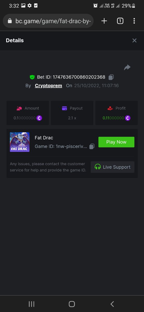 EMMAWILLS Posted October 25, 2022 Share Posted October 25, 2022 https://bc.game/#/sd/10VTN3L3FWKZYR Bet id- 192921355 Link to comment Share on other sites More sharing options...