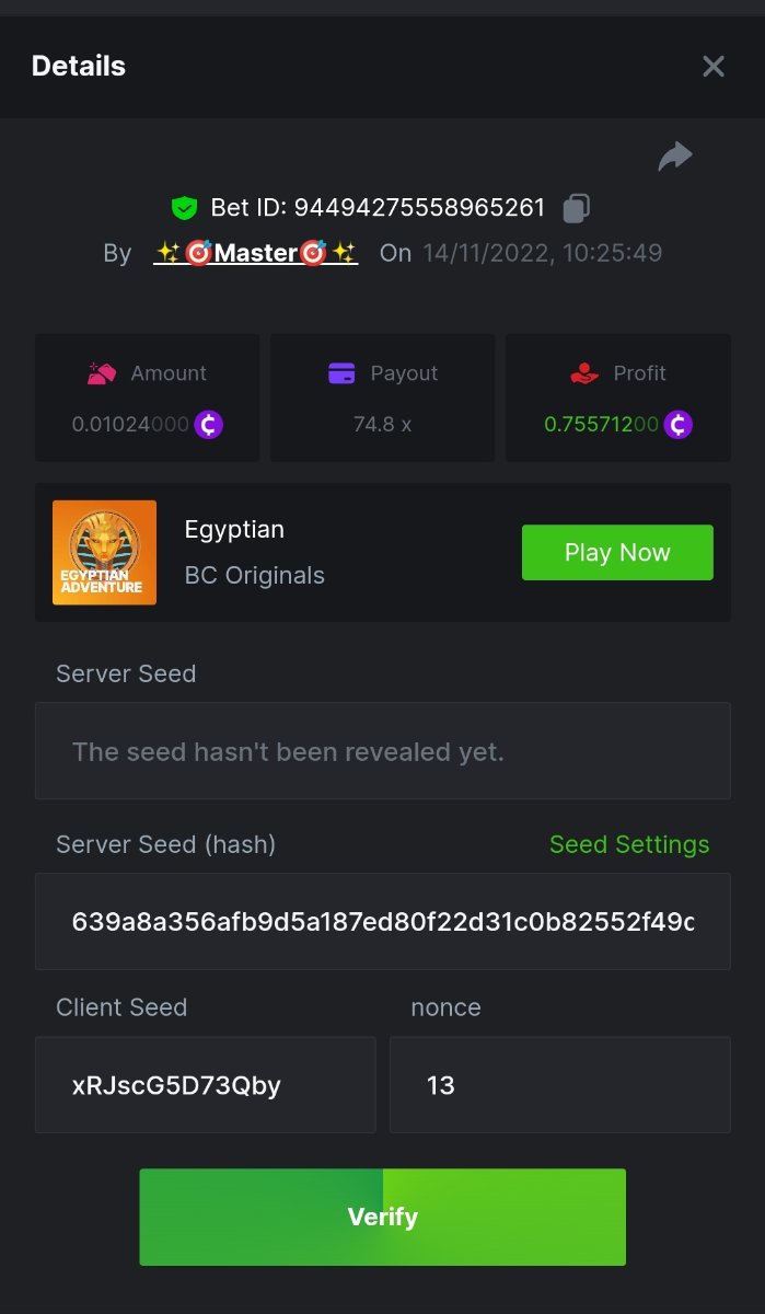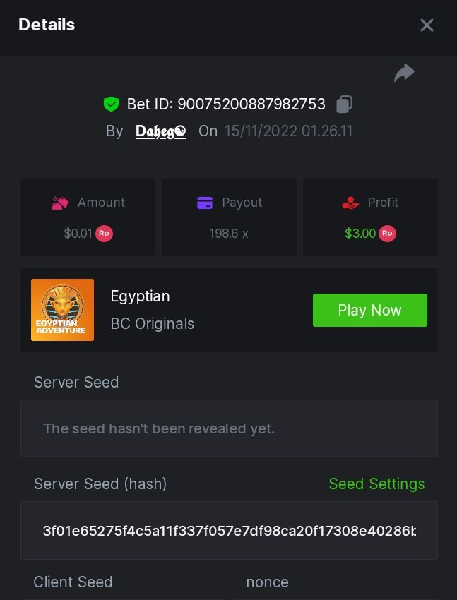Moderator Giandreas Posted November 14, 2022 Moderator Share Posted November 14, 2022 https://hash.game/#/sd/10X5WVZS6NEKNN https://hash.game/game/egyptian#/user/profile/4456056 Link to comment Share on other sites More sharing options...