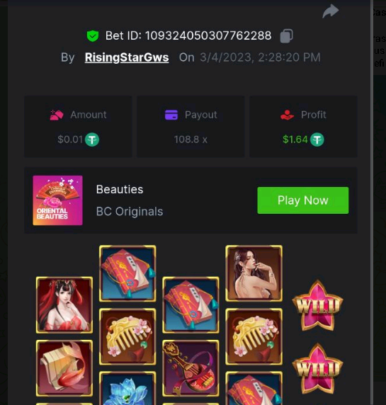 Maksypro Posted March 4, 2023 Share Posted March 4, 2023 Read Carefully Before Start To Hunt Daily Challenges #164 ORIENTAL BEAUTIES Hunt : Win the highest pay out Min Payout requirement 50x Min Level 4 ️Duration Starting : Now End time : 23.59 UTC Time How to Join? Make screenshot + paste your bet link + UID or Profile link Mini bet amount - 0.01$ Any coin allowed Reward Prizes 1st Place.....$7 BCD 2nd Place.....$5 BCD 3rd Place.....$4 BCD 4th Place.....$3 BCD 5th Place.....$2 BCD 🏵 Winners will be announcing next day after Roll Point! 1 Link to comment Share on other sites More sharing options...